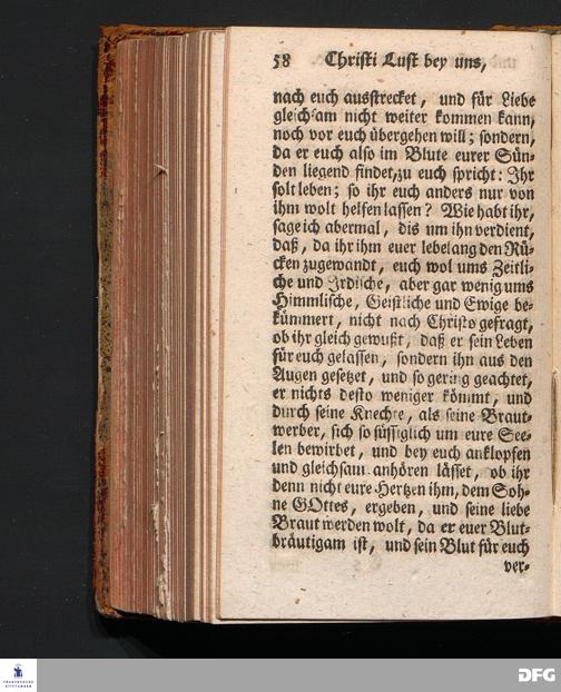 Christi Lust bey Uns, und Unsere Lust bey Christo, Am III.Christtage An.1717. In einer Uber den ordentlichen Evangelischen Text Joh.I, 1=14. In der Stadtkirchen zu Blaubeuren im Hertzogthum Würtemberg, Auf Erfordern Sr.Hochwürden des ietzigen Herrn Prälaten und gantzen Ministerii daselbst, gehaltenen Und auf Verlangen in den Druck gegebenen Predigt vorgestellet von August Hermann Francken, S.Theol.Prof.Past.und Scholarcha zu Halle im Hertzogthum Magdeburg. Zweyte Auflage. HALLE, verlegt im Wäysen=Hause, 1739.