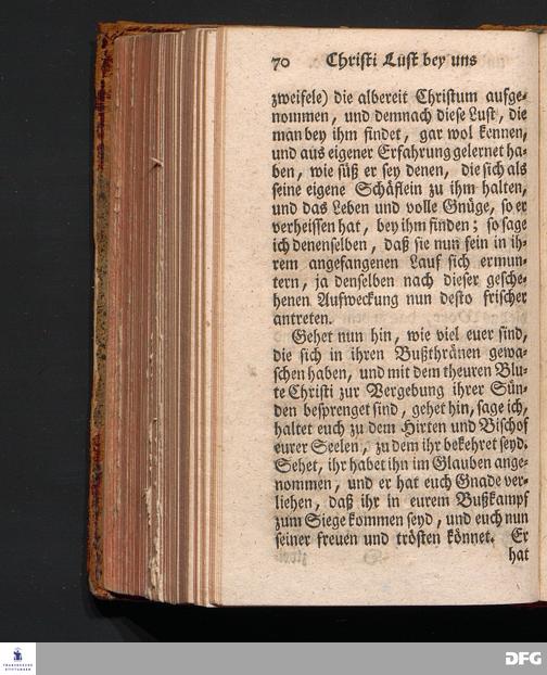 Christi Lust bey Uns, und Unsere Lust bey Christo, Am III.Christtage An.1717. In einer Uber den ordentlichen Evangelischen Text Joh.I, 1=14. In der Stadtkirchen zu Blaubeuren im Hertzogthum Würtemberg, Auf Erfordern Sr.Hochwürden des ietzigen Herrn Prälaten und gantzen Ministerii daselbst, gehaltenen Und auf Verlangen in den Druck gegebenen Predigt vorgestellet von August Hermann Francken, S.Theol.Prof.Past.und Scholarcha zu Halle im Hertzogthum Magdeburg. Zweyte Auflage. HALLE, verlegt im Wäysen=Hause, 1739.