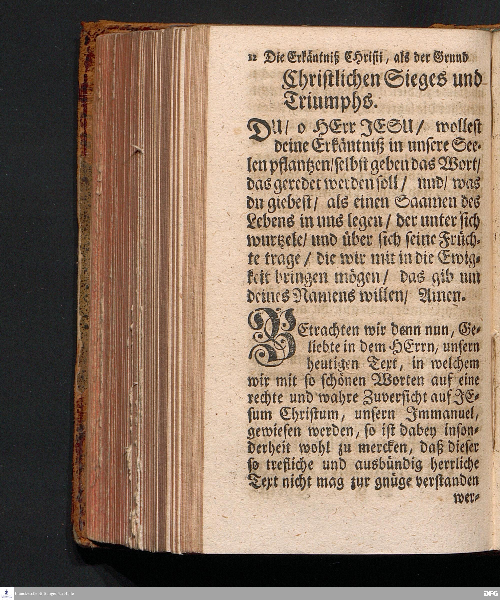 Die Erkäntniß CHRISTI / als der Grund alles wahren Christlichen Sieges und Triumphs / an dem auf den 17.Sonntag nach Trinit.1717. Wegen erhaltener Victorie gegen die Türcken und Eroberung der Festung Belgrad gelegten Danck=Fest / Zu Wisbaden im Fürstenthum Nassau=It[!]stein / In einer bey der damaligen Durchreise auf Verlangen gehaltetenen Predigt aus Es.VIII,9--15. vorgestellet von August Hermann Francken / S.Th.Pr.Past.Vlr.& Schol.