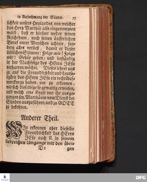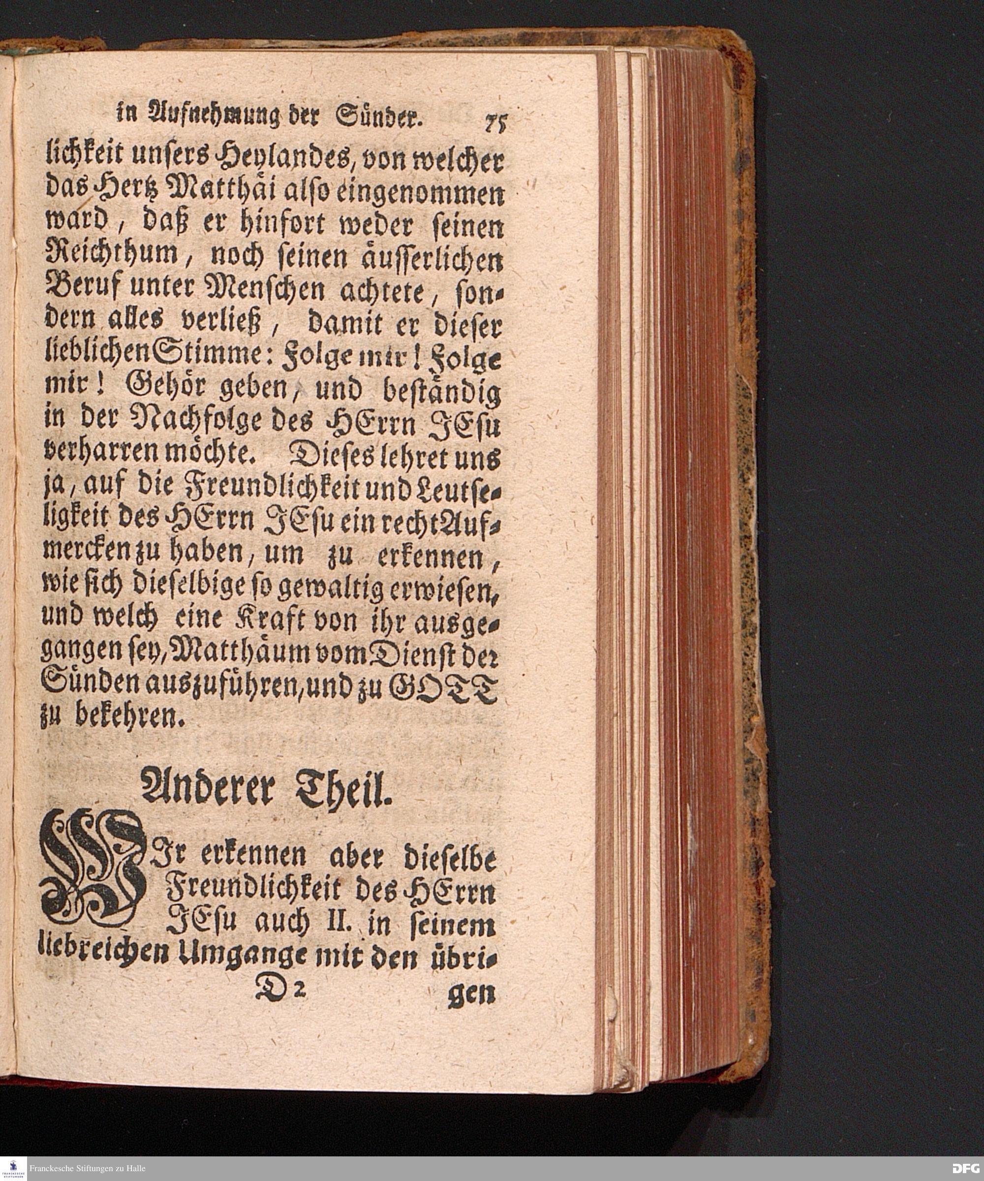 Die Freundlichkeit des HErrn JESU in Aufnehmung der Sünder / Am Tag des Apostels Matthäi 1717. Aus dem ordentlichen Evangelio Matth.IX, 9--13. In der Fürstl.Nassauischen Residentz Idstein bey der damaligen Durchreise in einer auf Verlangen gehaltenen Predigt vorgestellet von August Hermann Francken. [1720]