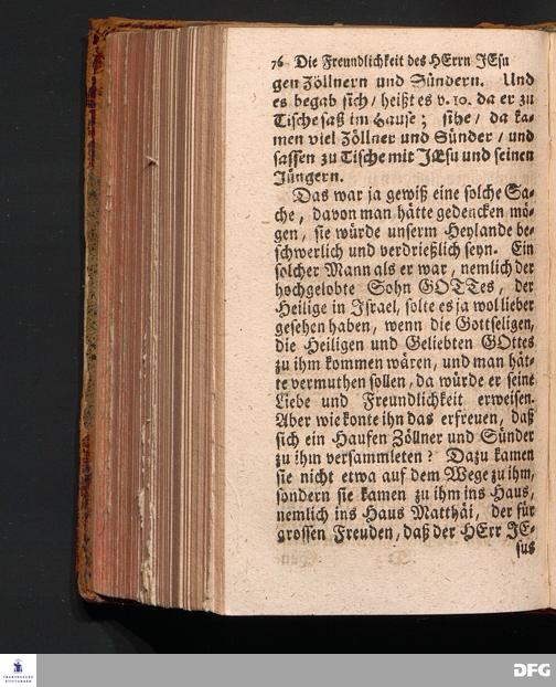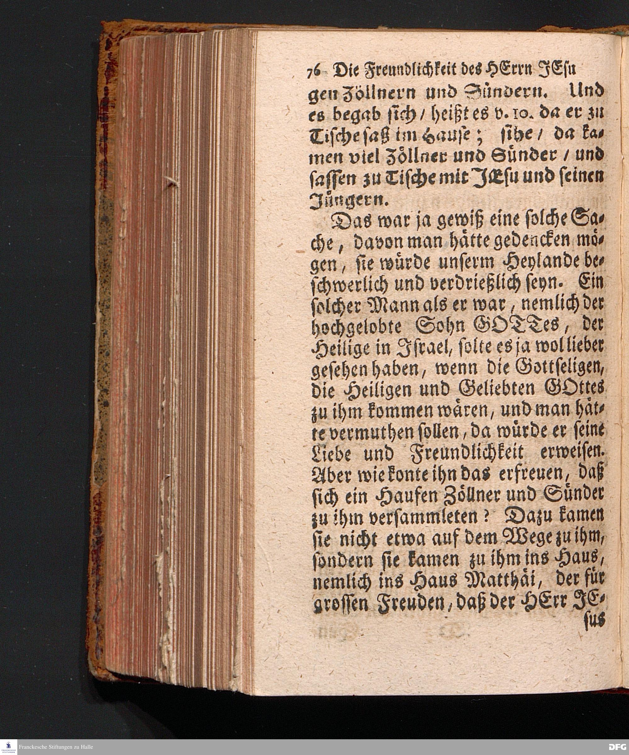 Die Freundlichkeit des HErrn JESU in Aufnehmung der Sünder / Am Tag des Apostels Matthäi 1717. Aus dem ordentlichen Evangelio Matth.IX, 9--13. In der Fürstl.Nassauischen Residentz Idstein bey der damaligen Durchreise in einer auf Verlangen gehaltenen Predigt vorgestellet von August Hermann Francken. [1720]