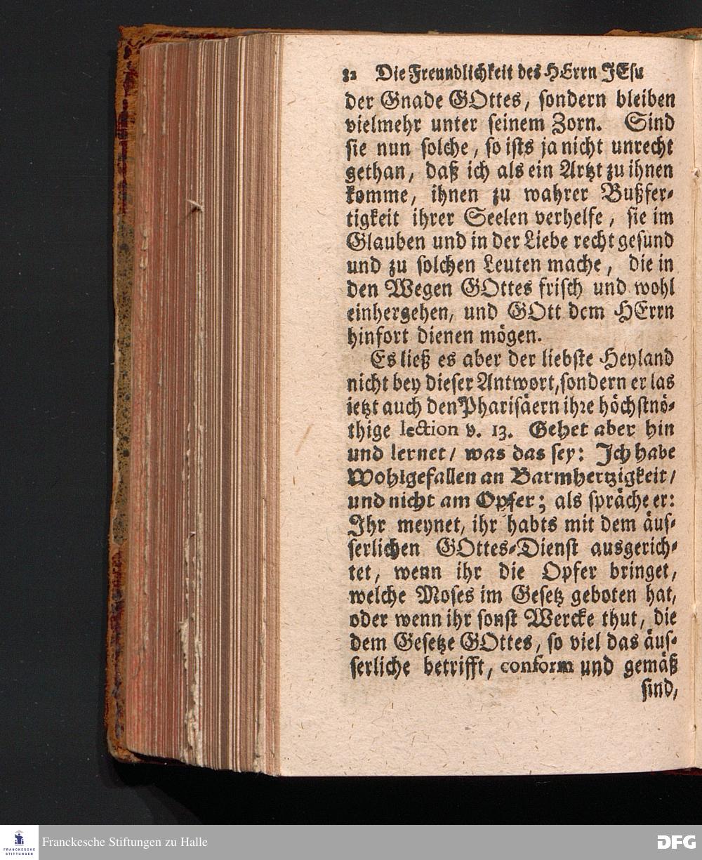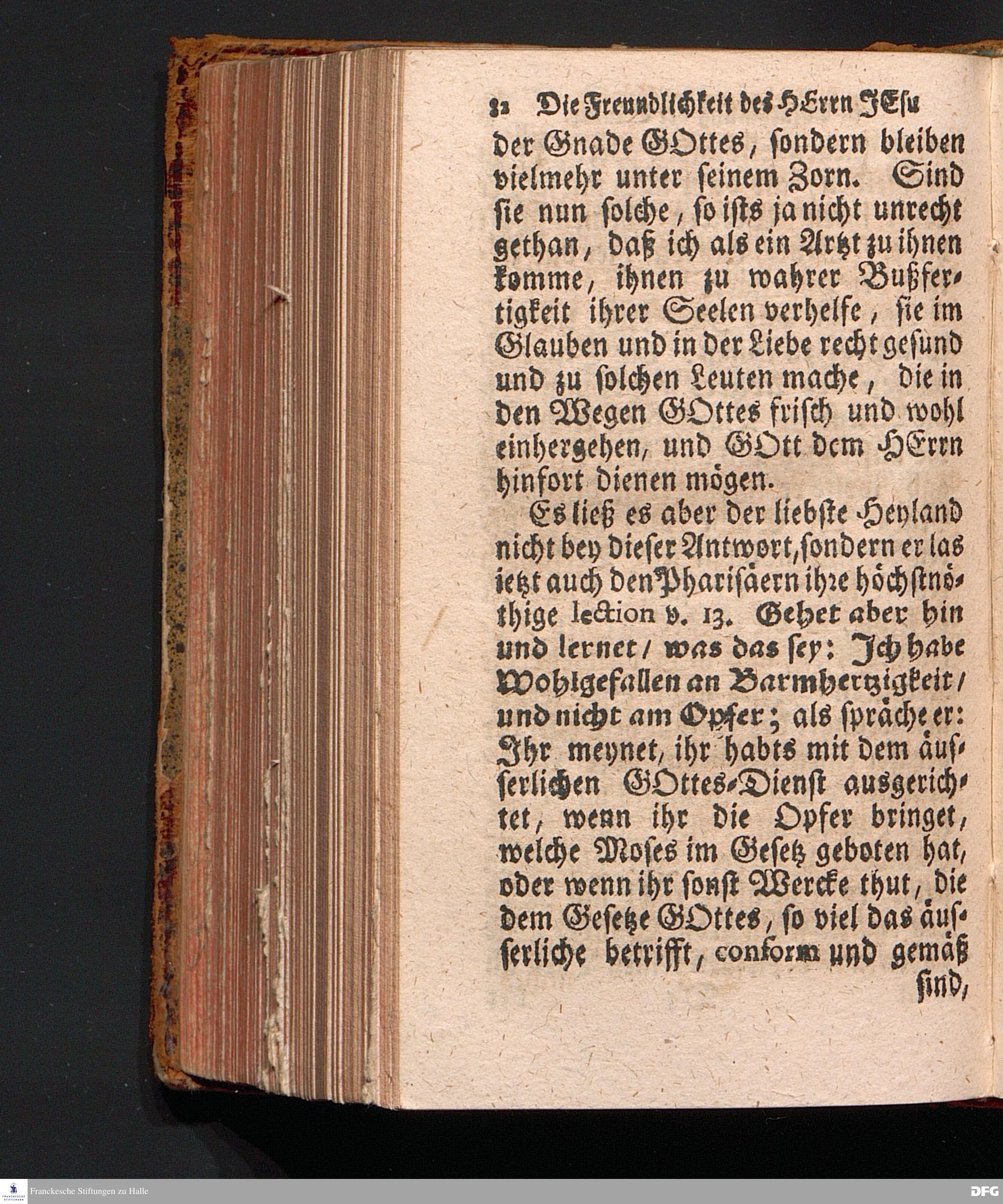 Die Freundlichkeit des HErrn JESU in Aufnehmung der Sünder / Am Tag des Apostels Matthäi 1717. Aus dem ordentlichen Evangelio Matth.IX, 9--13. In der Fürstl.Nassauischen Residentz Idstein bey der damaligen Durchreise in einer auf Verlangen gehaltenen Predigt vorgestellet von August Hermann Francken. [1720]