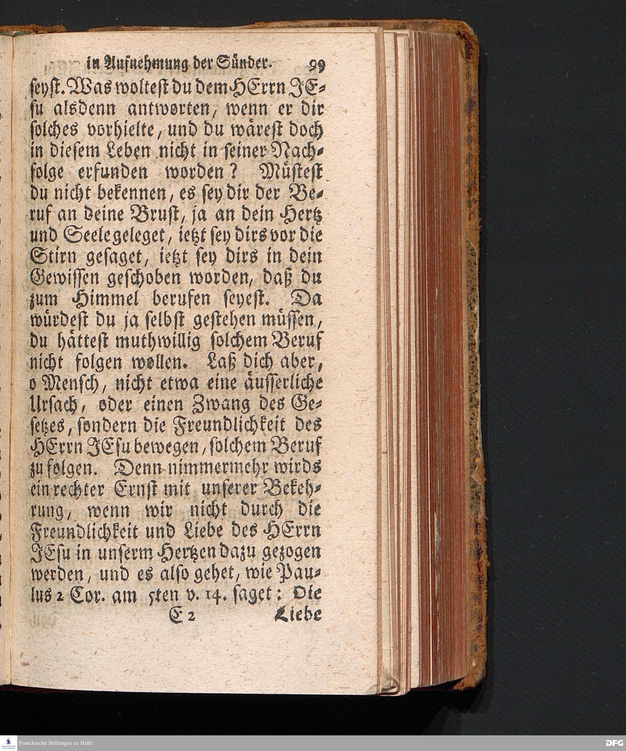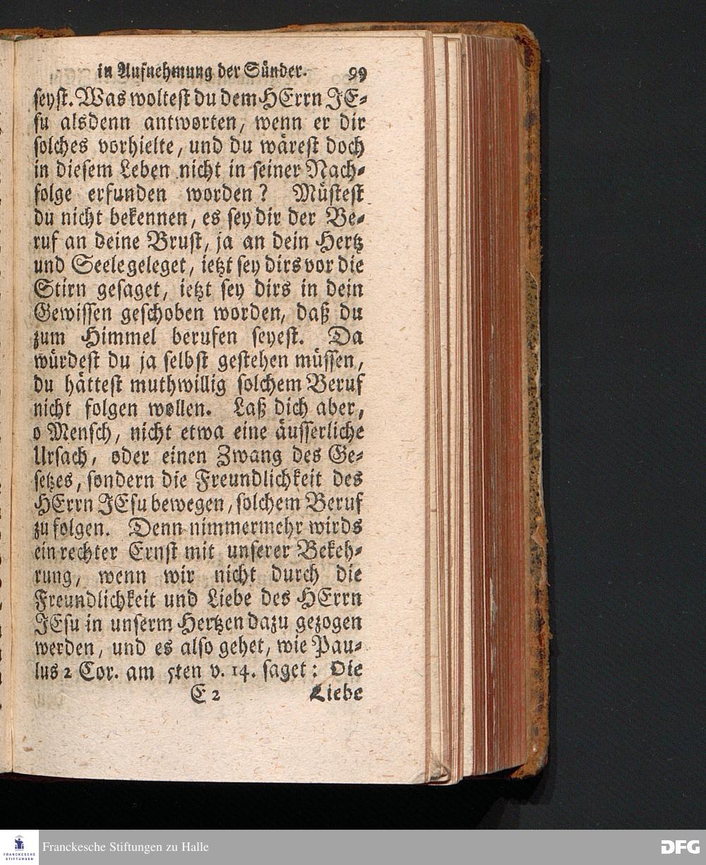 Die Freundlichkeit des HErrn JESU in Aufnehmung der Sünder / Am Tag des Apostels Matthäi 1717. Aus dem ordentlichen Evangelio Matth.IX, 9--13. In der Fürstl.Nassauischen Residentz Idstein bey der damaligen Durchreise in einer auf Verlangen gehaltenen Predigt vorgestellet von August Hermann Francken. [1720]