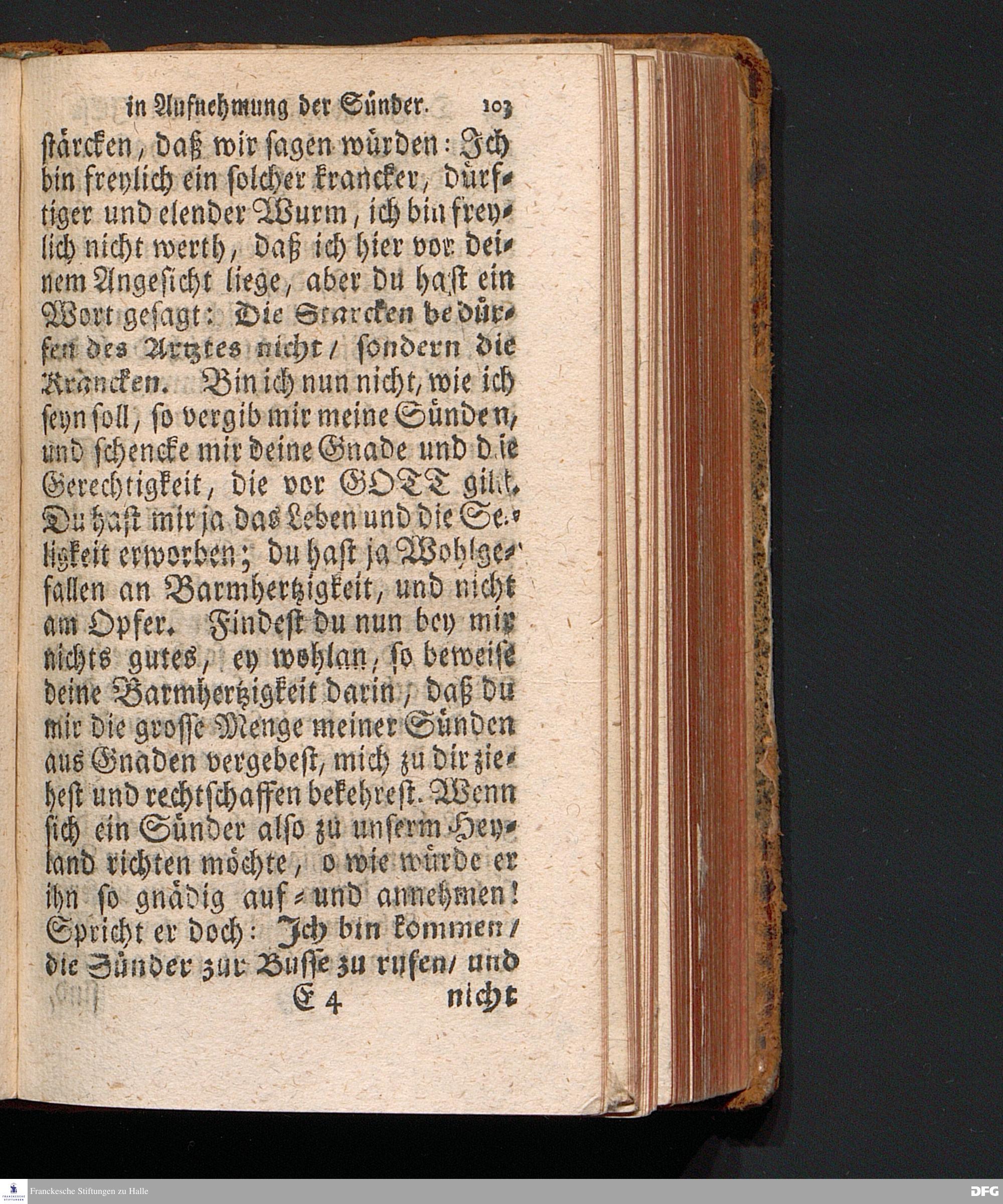 Die Freundlichkeit des HErrn JESU in Aufnehmung der Sünder / Am Tag des Apostels Matthäi 1717. Aus dem ordentlichen Evangelio Matth.IX, 9--13. In der Fürstl.Nassauischen Residentz Idstein bey der damaligen Durchreise in einer auf Verlangen gehaltenen Predigt vorgestellet von August Hermann Francken. [1720]