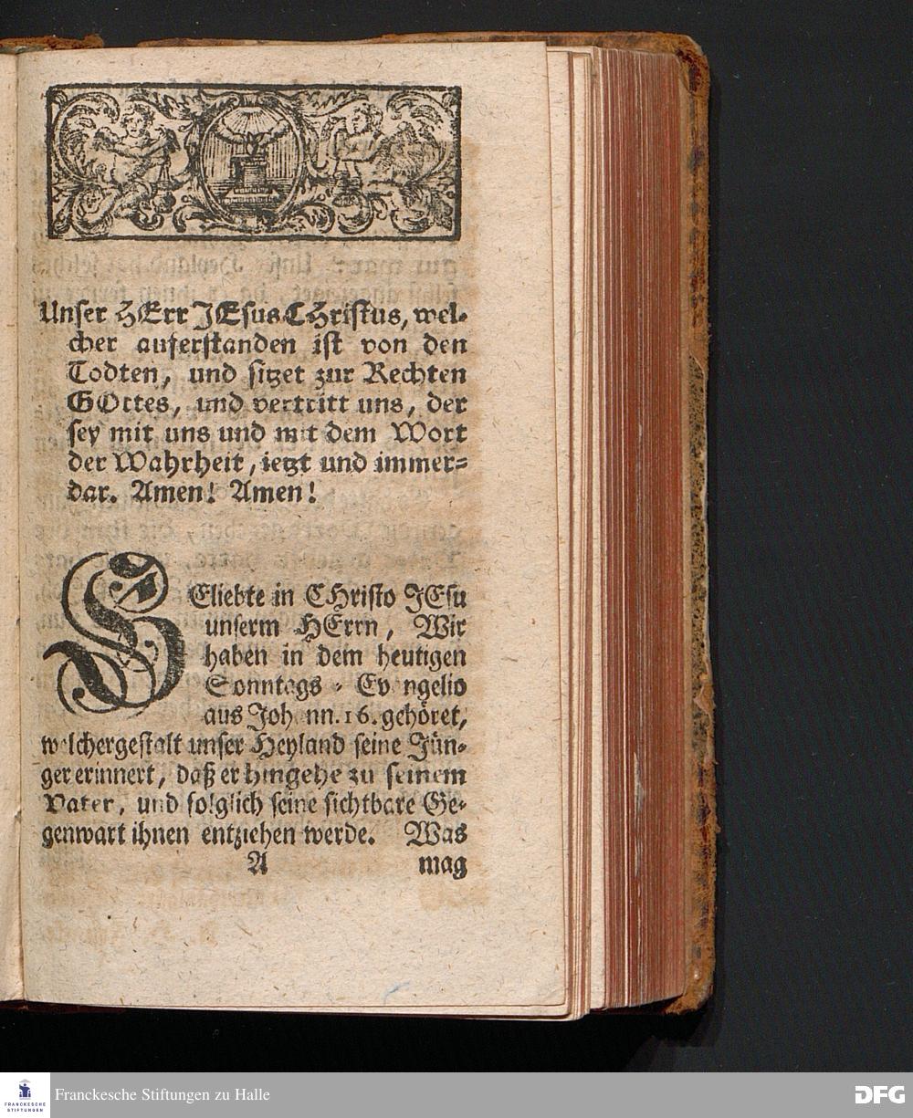 Das Einige, so noth ist, daß man lerne thun nach dem Wohlgefallen GOttes, In einer Am Sonntage Cantate 1721. aus den Worten Ps.143,10. Lehre mich thun nach deinem Wohlgefallen: denn du bist mein GOtt. Dein guter Geist führe mich auf ebener Bahn; Mit Genehmhaltung der Hochlöbl.Theol.Facultät zu Jena in der Collegen=Kirche gehaltenen Predigt vorgestellet von August Hermann Francken, S.Th.Prof.Past.Vlr.& Gymn.Schol. Dritte Auflage. HALLE, in Verlegung des Wäysen-Hause, 1742.