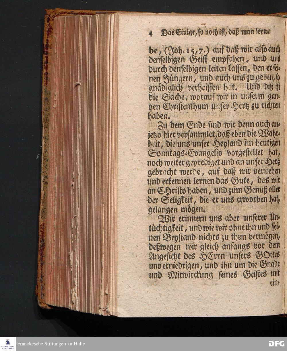 Das Einige, so noth ist, daß man lerne thun nach dem Wohlgefallen GOttes, In einer Am Sonntage Cantate 1721. aus den Worten Ps.143,10. Lehre mich thun nach deinem Wohlgefallen: denn du bist mein GOtt. Dein guter Geist führe mich auf ebener Bahn; Mit Genehmhaltung der Hochlöbl.Theol.Facultät zu Jena in der Collegen=Kirche gehaltenen Predigt vorgestellet von August Hermann Francken, S.Th.Prof.Past.Vlr.& Gymn.Schol. Dritte Auflage. HALLE, in Verlegung des Wäysen-Hause, 1742.