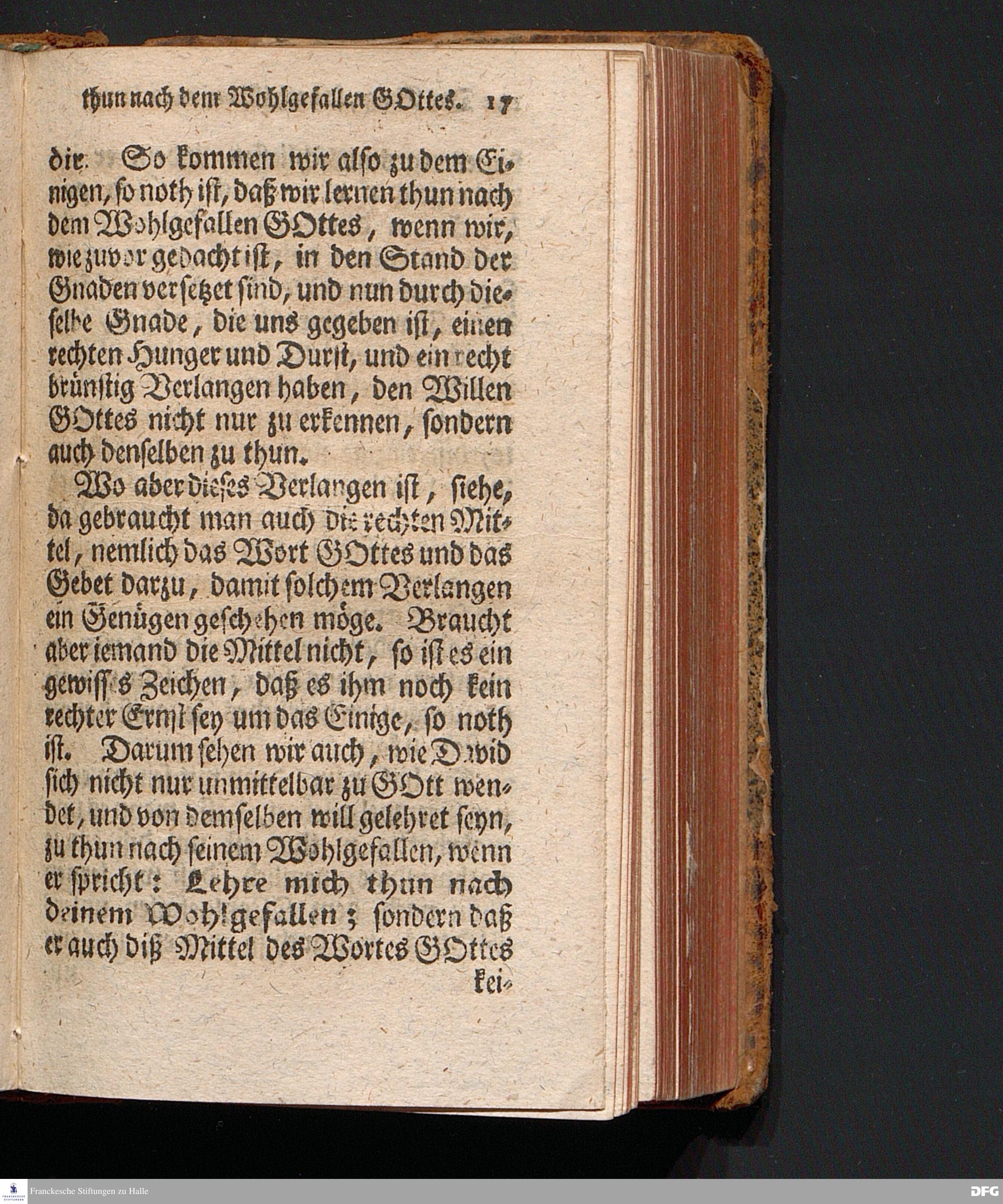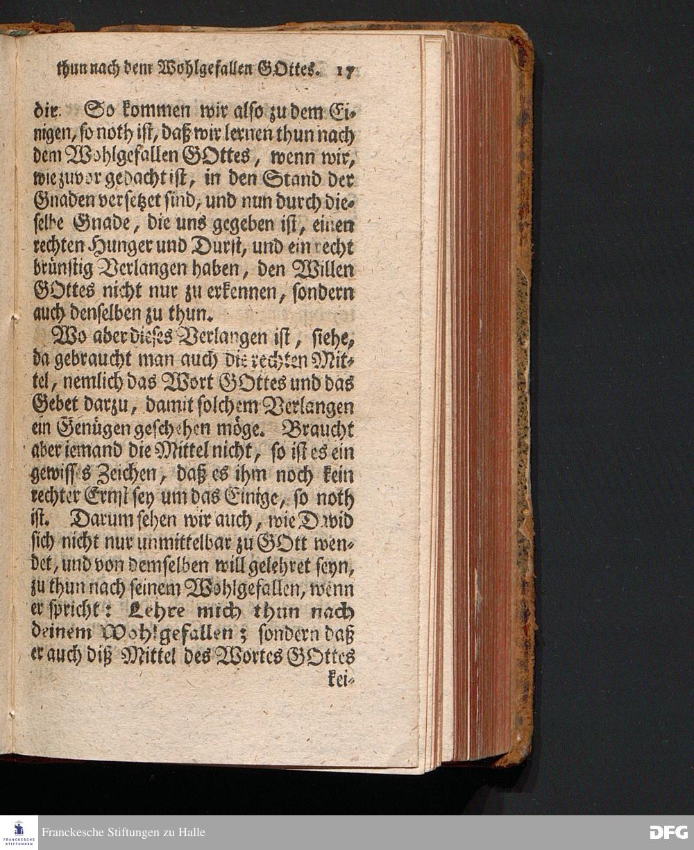 Das Einige, so noth ist, daß man lerne thun nach dem Wohlgefallen GOttes, In einer Am Sonntage Cantate 1721. aus den Worten Ps.143,10. Lehre mich thun nach deinem Wohlgefallen: denn du bist mein GOtt. Dein guter Geist führe mich auf ebener Bahn; Mit Genehmhaltung der Hochlöbl.Theol.Facultät zu Jena in der Collegen=Kirche gehaltenen Predigt vorgestellet von August Hermann Francken, S.Th.Prof.Past.Vlr.& Gymn.Schol. Dritte Auflage. HALLE, in Verlegung des Wäysen-Hause, 1742.