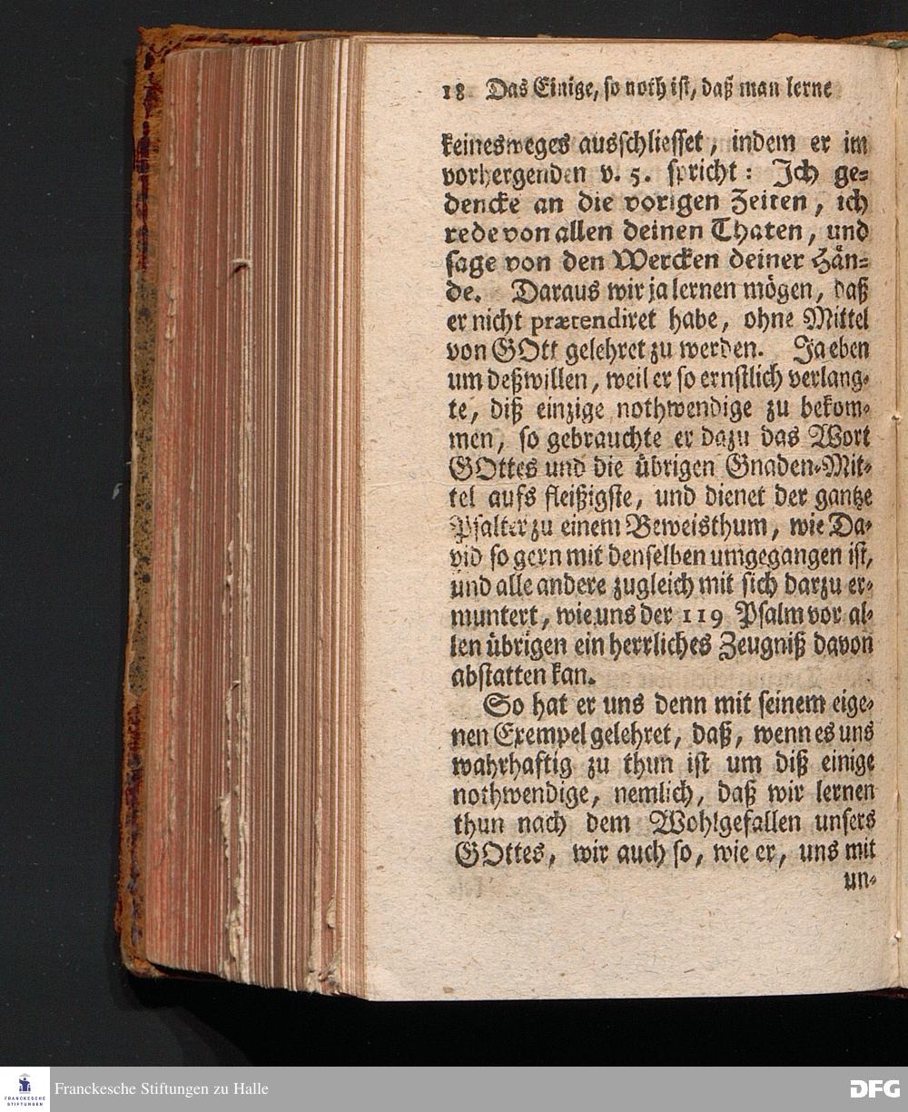 Das Einige, so noth ist, daß man lerne thun nach dem Wohlgefallen GOttes, In einer Am Sonntage Cantate 1721. aus den Worten Ps.143,10. Lehre mich thun nach deinem Wohlgefallen: denn du bist mein GOtt. Dein guter Geist führe mich auf ebener Bahn; Mit Genehmhaltung der Hochlöbl.Theol.Facultät zu Jena in der Collegen=Kirche gehaltenen Predigt vorgestellet von August Hermann Francken, S.Th.Prof.Past.Vlr.& Gymn.Schol. Dritte Auflage. HALLE, in Verlegung des Wäysen-Hause, 1742.