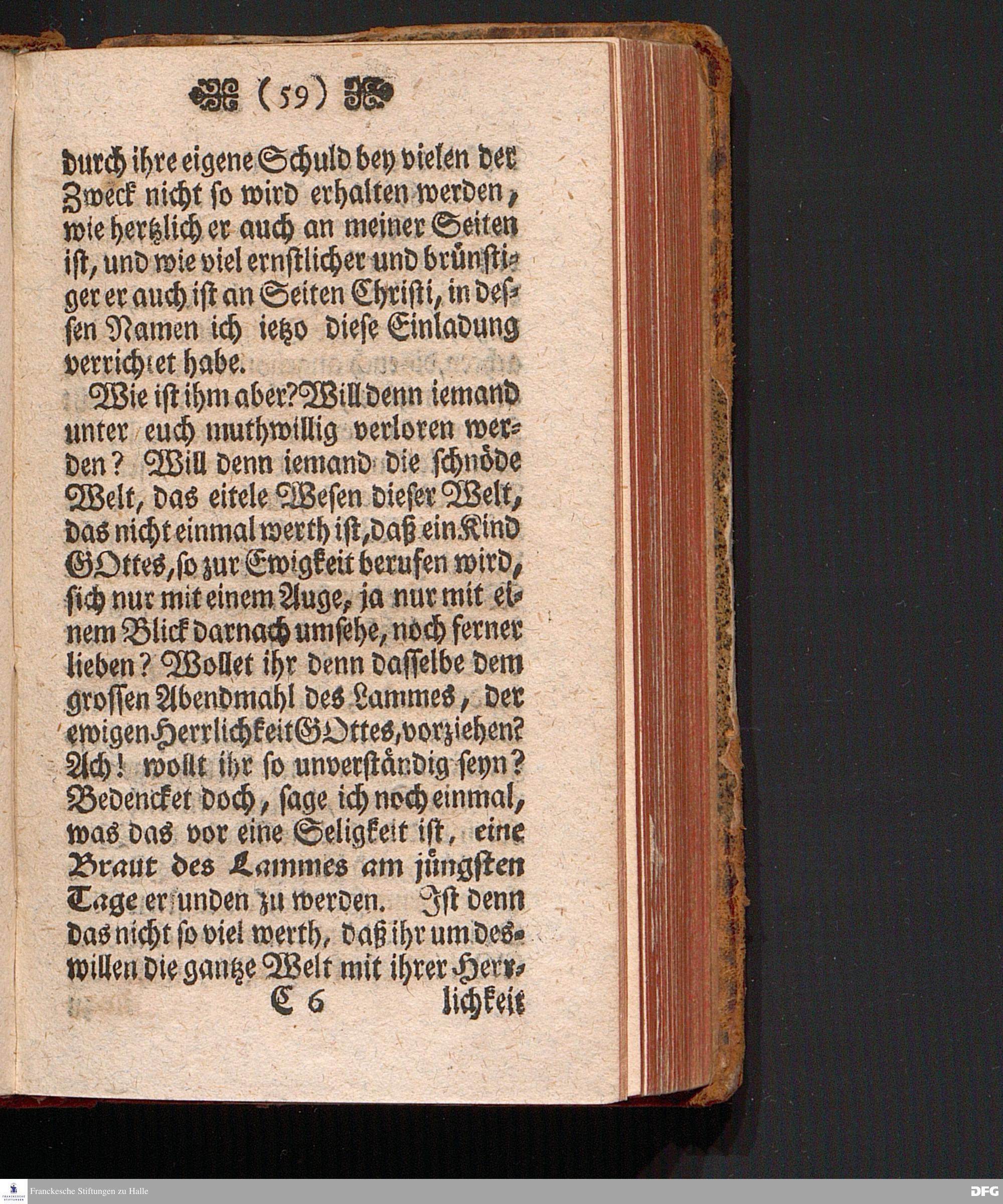Die Einladung Zu dem Grossen Abendmahl GOttes, Aus Luc.14, 16==24. In einer zu Halle in der Schulkirche Am II.Sonntage nach Trinit. Anno 1709. Gehaltenen Predigt vorgetragen von August Hermann Francken, S.Th.Prof.Past.Vlric.& Gymn.Schol. Dritte Auflage. HALLE, zu finden im Wäysenhause, 1739.