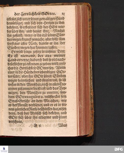 Die Erfahrung Der Herrlichkeit GOttes, Aus dem 5 Buch Mosis XXXII, 39.40. [Bibelzitat.] Am Buß=Tage den 2.Sept.1716. In der St.Ulrichs=Kirche in Halle vorgestellet von August Hermann Francken / S.Th.Prof.& Past.Vlr.& Schol. Der Jugend in den Schulen des Wäysenhauses / nach gehaltenem Examine, den 7.Nov.gedachten Jahres ausgetheilet. Andere Auflage. Halle, zu finden im Wäysen=Hause 1730.