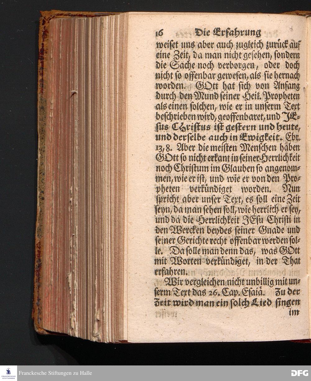 Die Erfahrung Der Herrlichkeit GOttes, Aus dem 5 Buch Mosis XXXII, 39.40. [Bibelzitat.] Am Buß=Tage den 2.Sept.1716. In der St.Ulrichs=Kirche in Halle vorgestellet von August Hermann Francken / S.Th.Prof.& Past.Vlr.& Schol. Der Jugend in den Schulen des Wäysenhauses / nach gehaltenem Examine, den 7.Nov.gedachten Jahres ausgetheilet. Andere Auflage. Halle, zu finden im Wäysen=Hause 1730.