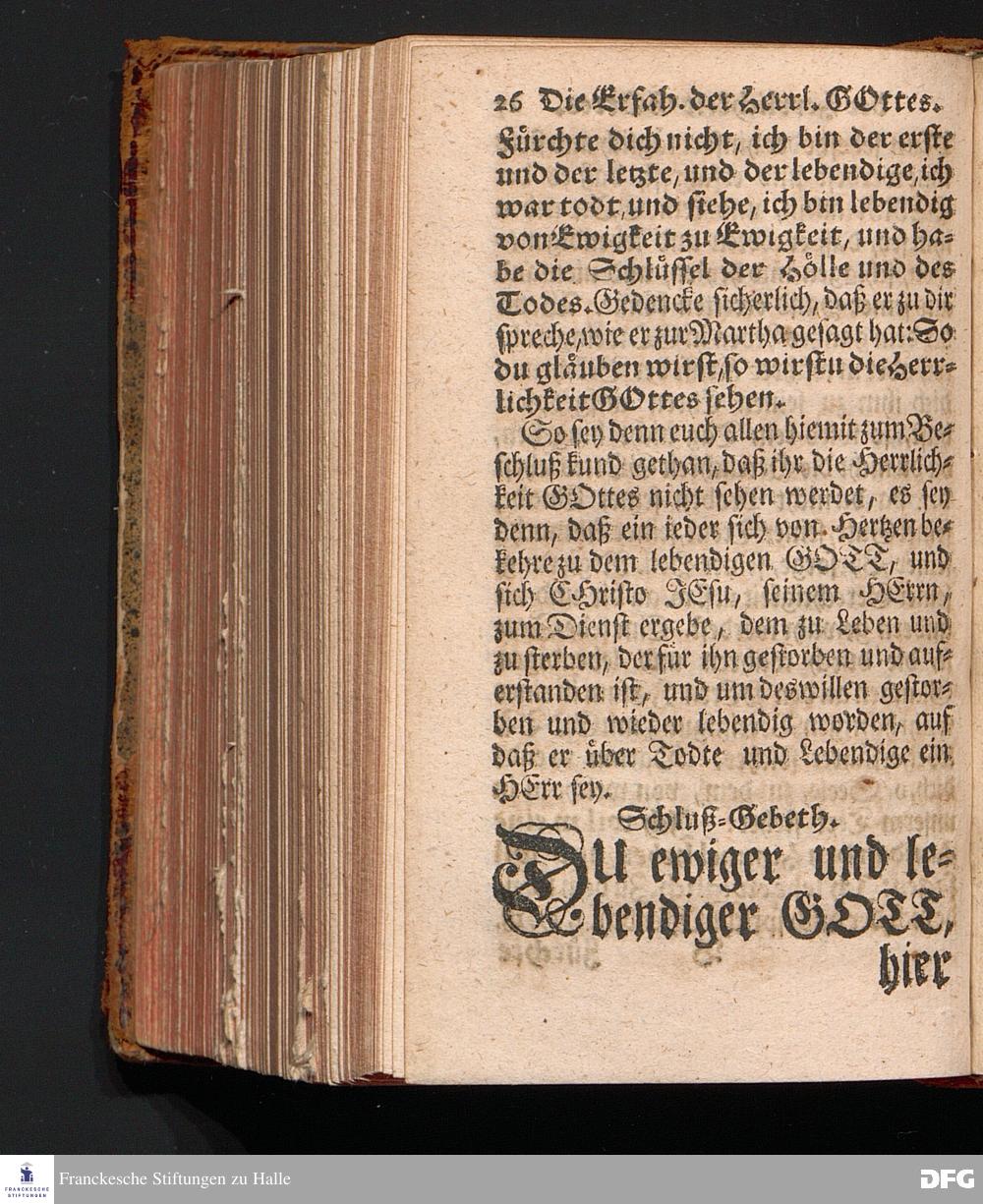 Die Erfahrung Der Herrlichkeit GOttes, Aus dem 5 Buch Mosis XXXII, 39.40. [Bibelzitat.] Am Buß=Tage den 2.Sept.1716. In der St.Ulrichs=Kirche in Halle vorgestellet von August Hermann Francken / S.Th.Prof.& Past.Vlr.& Schol. Der Jugend in den Schulen des Wäysenhauses / nach gehaltenem Examine, den 7.Nov.gedachten Jahres ausgetheilet. Andere Auflage. Halle, zu finden im Wäysen=Hause 1730.