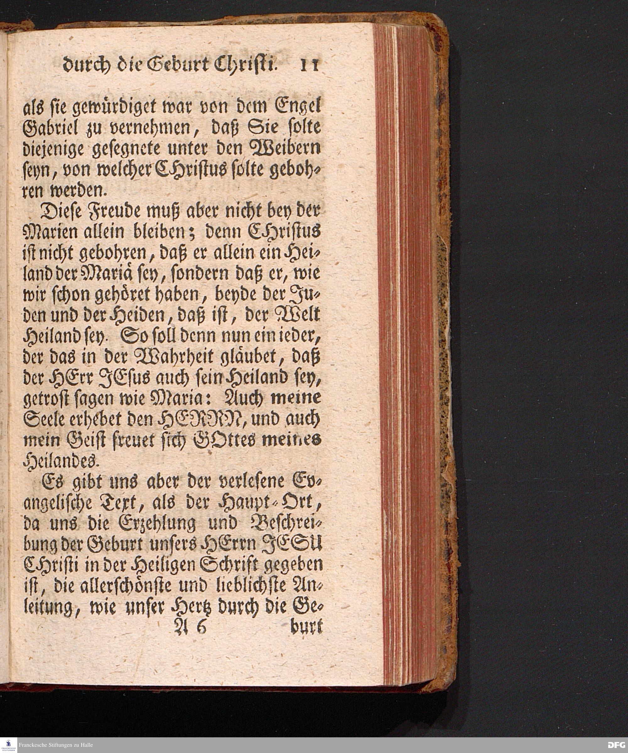 Die Erfreuung des Menschlichen Hertzens Durch die Geburt CHRISTI, Am I.Christ=Tage A.1717. In einer Uber den ordentlichen Evangelischen Text Luc.II, 1=14. In der Stadt=Kirchen zu Blaubeuren im Hertzogthum Würtemberg Auf Erfordern Sr.Hochwürden des jetzigen Herrn Prälaten und gantzen Ministerii daselbst, gehaltenen Predigt vorgestellet Und auf Begehren zum Druck gegeben von August Hermann Francken, S.Theol.Prof.Past.und Scholarcha zu Halle im Hertzogthum Magdeburg. Vierte Auflage, Nach dem zu Ulm gedruckten Exemplar. HALLE, gedruckt im Wäysen=Hause, 1740.