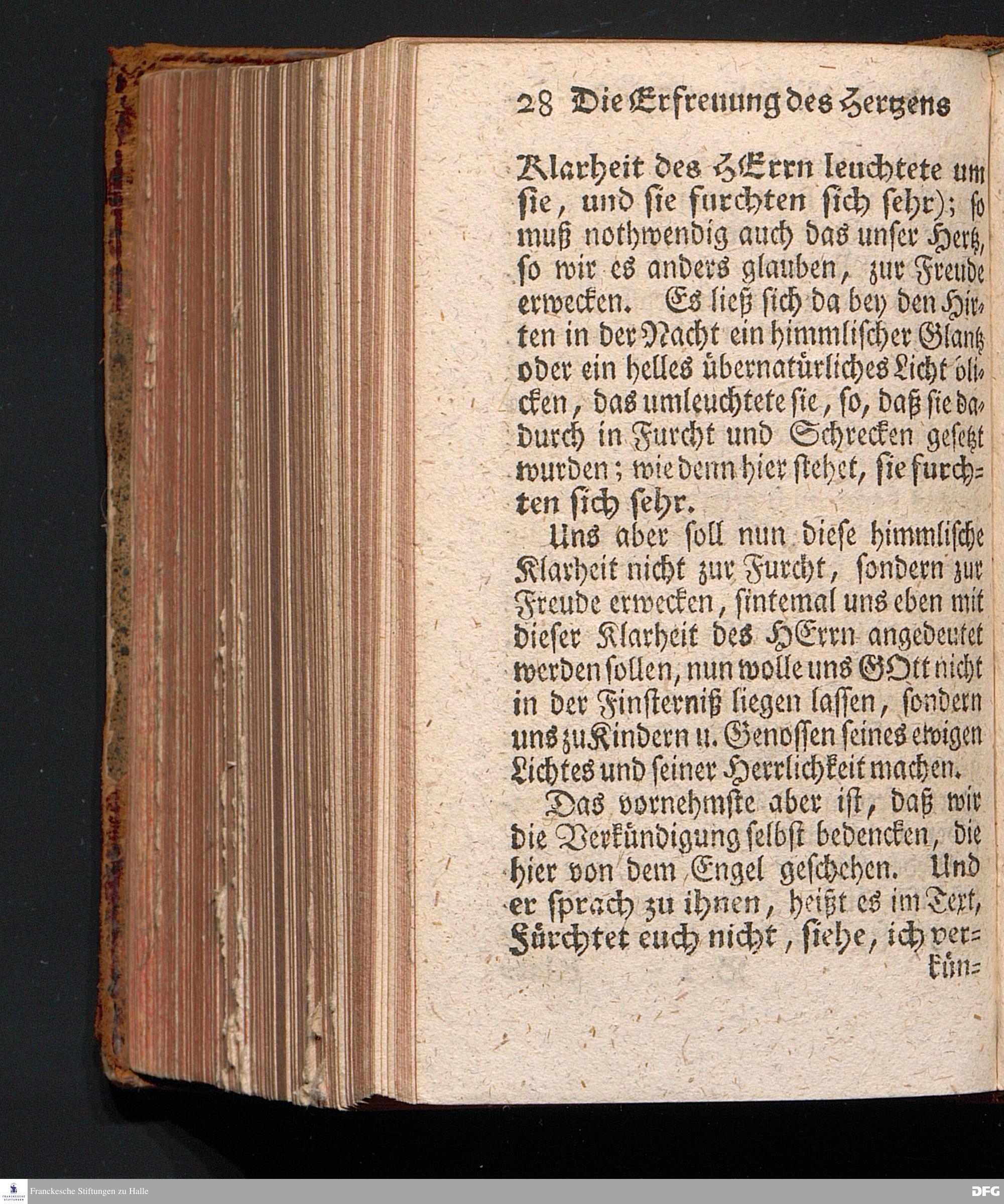Die Erfreuung des Menschlichen Hertzens Durch die Geburt CHRISTI, Am I.Christ=Tage A.1717. In einer Uber den ordentlichen Evangelischen Text Luc.II, 1=14. In der Stadt=Kirchen zu Blaubeuren im Hertzogthum Würtemberg Auf Erfordern Sr.Hochwürden des jetzigen Herrn Prälaten und gantzen Ministerii daselbst, gehaltenen Predigt vorgestellet Und auf Begehren zum Druck gegeben von August Hermann Francken, S.Theol.Prof.Past.und Scholarcha zu Halle im Hertzogthum Magdeburg. Vierte Auflage, Nach dem zu Ulm gedruckten Exemplar. HALLE, gedruckt im Wäysen=Hause, 1740.