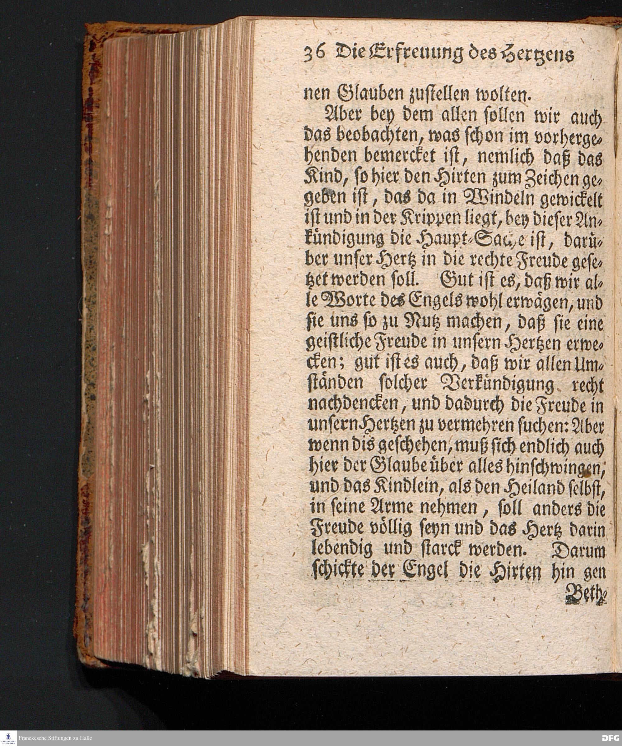 Die Erfreuung des Menschlichen Hertzens Durch die Geburt CHRISTI, Am I.Christ=Tage A.1717. In einer Uber den ordentlichen Evangelischen Text Luc.II, 1=14. In der Stadt=Kirchen zu Blaubeuren im Hertzogthum Würtemberg Auf Erfordern Sr.Hochwürden des jetzigen Herrn Prälaten und gantzen Ministerii daselbst, gehaltenen Predigt vorgestellet Und auf Begehren zum Druck gegeben von August Hermann Francken, S.Theol.Prof.Past.und Scholarcha zu Halle im Hertzogthum Magdeburg. Vierte Auflage, Nach dem zu Ulm gedruckten Exemplar. HALLE, gedruckt im Wäysen=Hause, 1740.