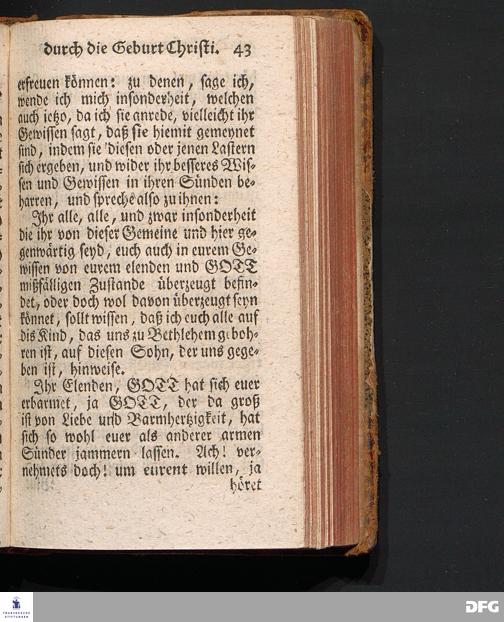 Die Erfreuung des Menschlichen Hertzens Durch die Geburt CHRISTI, Am I.Christ=Tage A.1717. In einer Uber den ordentlichen Evangelischen Text Luc.II, 1=14. In der Stadt=Kirchen zu Blaubeuren im Hertzogthum Würtemberg Auf Erfordern Sr.Hochwürden des jetzigen Herrn Prälaten und gantzen Ministerii daselbst, gehaltenen Predigt vorgestellet Und auf Begehren zum Druck gegeben von August Hermann Francken, S.Theol.Prof.Past.und Scholarcha zu Halle im Hertzogthum Magdeburg. Vierte Auflage, Nach dem zu Ulm gedruckten Exemplar. HALLE, gedruckt im Wäysen=Hause, 1740.
