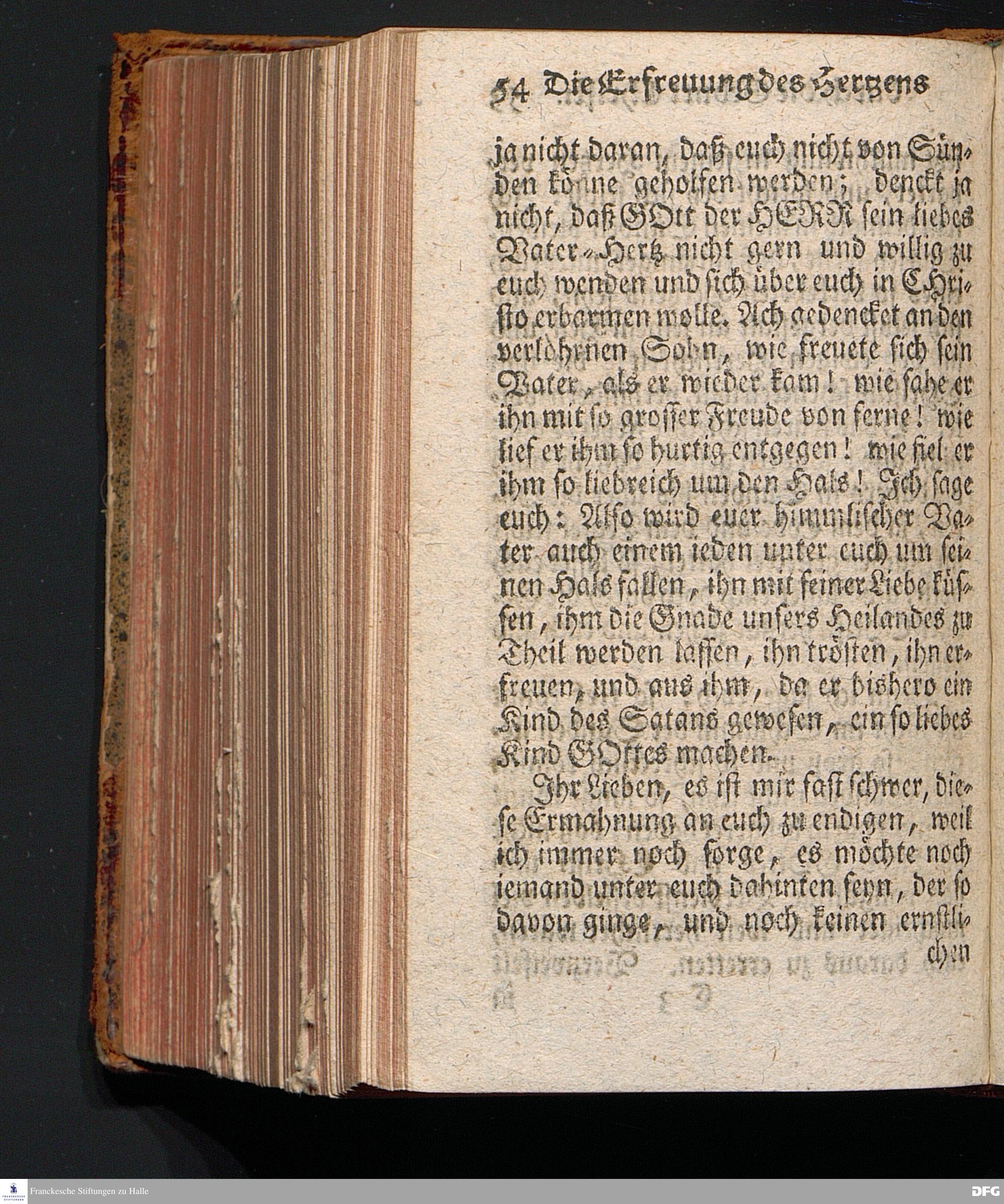 Die Erfreuung des Menschlichen Hertzens Durch die Geburt CHRISTI, Am I.Christ=Tage A.1717. In einer Uber den ordentlichen Evangelischen Text Luc.II, 1=14. In der Stadt=Kirchen zu Blaubeuren im Hertzogthum Würtemberg Auf Erfordern Sr.Hochwürden des jetzigen Herrn Prälaten und gantzen Ministerii daselbst, gehaltenen Predigt vorgestellet Und auf Begehren zum Druck gegeben von August Hermann Francken, S.Theol.Prof.Past.und Scholarcha zu Halle im Hertzogthum Magdeburg. Vierte Auflage, Nach dem zu Ulm gedruckten Exemplar. HALLE, gedruckt im Wäysen=Hause, 1740.