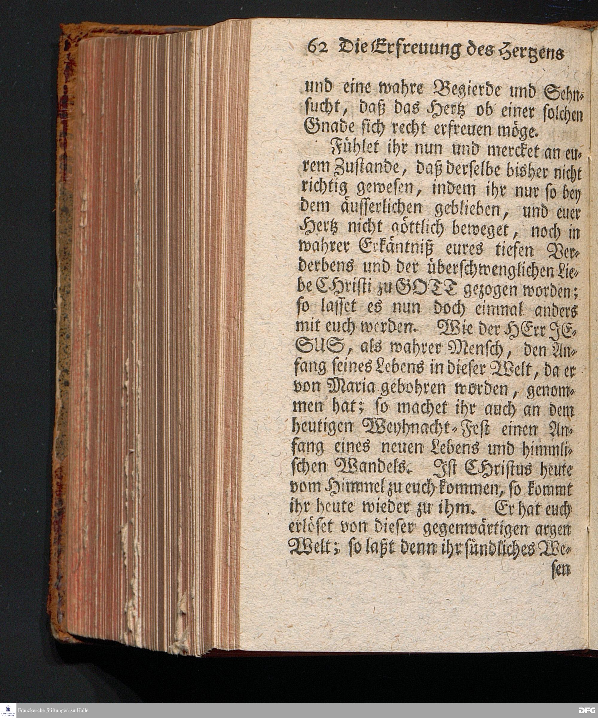 Die Erfreuung des Menschlichen Hertzens Durch die Geburt CHRISTI, Am I.Christ=Tage A.1717. In einer Uber den ordentlichen Evangelischen Text Luc.II, 1=14. In der Stadt=Kirchen zu Blaubeuren im Hertzogthum Würtemberg Auf Erfordern Sr.Hochwürden des jetzigen Herrn Prälaten und gantzen Ministerii daselbst, gehaltenen Predigt vorgestellet Und auf Begehren zum Druck gegeben von August Hermann Francken, S.Theol.Prof.Past.und Scholarcha zu Halle im Hertzogthum Magdeburg. Vierte Auflage, Nach dem zu Ulm gedruckten Exemplar. HALLE, gedruckt im Wäysen=Hause, 1740.