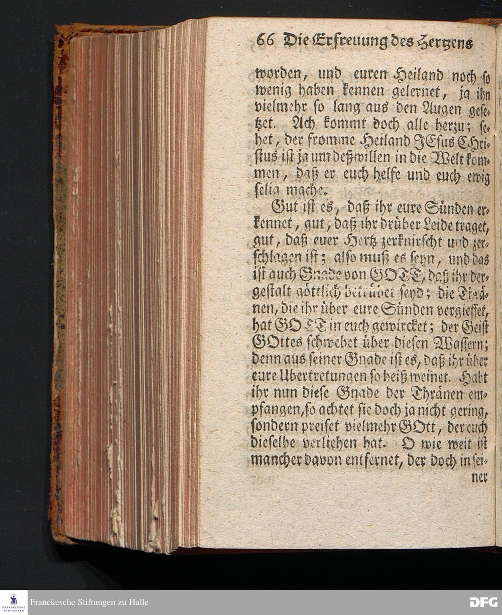 Die Erfreuung des Menschlichen Hertzens Durch die Geburt CHRISTI, Am I.Christ=Tage A.1717. In einer Uber den ordentlichen Evangelischen Text Luc.II, 1=14. In der Stadt=Kirchen zu Blaubeuren im Hertzogthum Würtemberg Auf Erfordern Sr.Hochwürden des jetzigen Herrn Prälaten und gantzen Ministerii daselbst, gehaltenen Predigt vorgestellet Und auf Begehren zum Druck gegeben von August Hermann Francken, S.Theol.Prof.Past.und Scholarcha zu Halle im Hertzogthum Magdeburg. Vierte Auflage, Nach dem zu Ulm gedruckten Exemplar. HALLE, gedruckt im Wäysen=Hause, 1740.