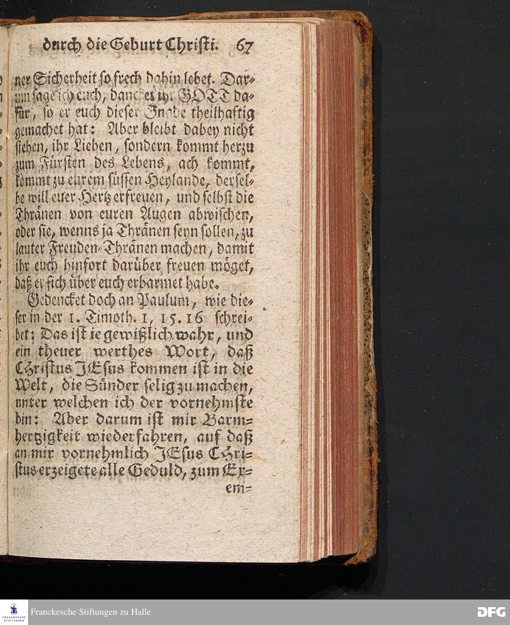 Die Erfreuung des Menschlichen Hertzens Durch die Geburt CHRISTI, Am I.Christ=Tage A.1717. In einer Uber den ordentlichen Evangelischen Text Luc.II, 1=14. In der Stadt=Kirchen zu Blaubeuren im Hertzogthum Würtemberg Auf Erfordern Sr.Hochwürden des jetzigen Herrn Prälaten und gantzen Ministerii daselbst, gehaltenen Predigt vorgestellet Und auf Begehren zum Druck gegeben von August Hermann Francken, S.Theol.Prof.Past.und Scholarcha zu Halle im Hertzogthum Magdeburg. Vierte Auflage, Nach dem zu Ulm gedruckten Exemplar. HALLE, gedruckt im Wäysen=Hause, 1740.