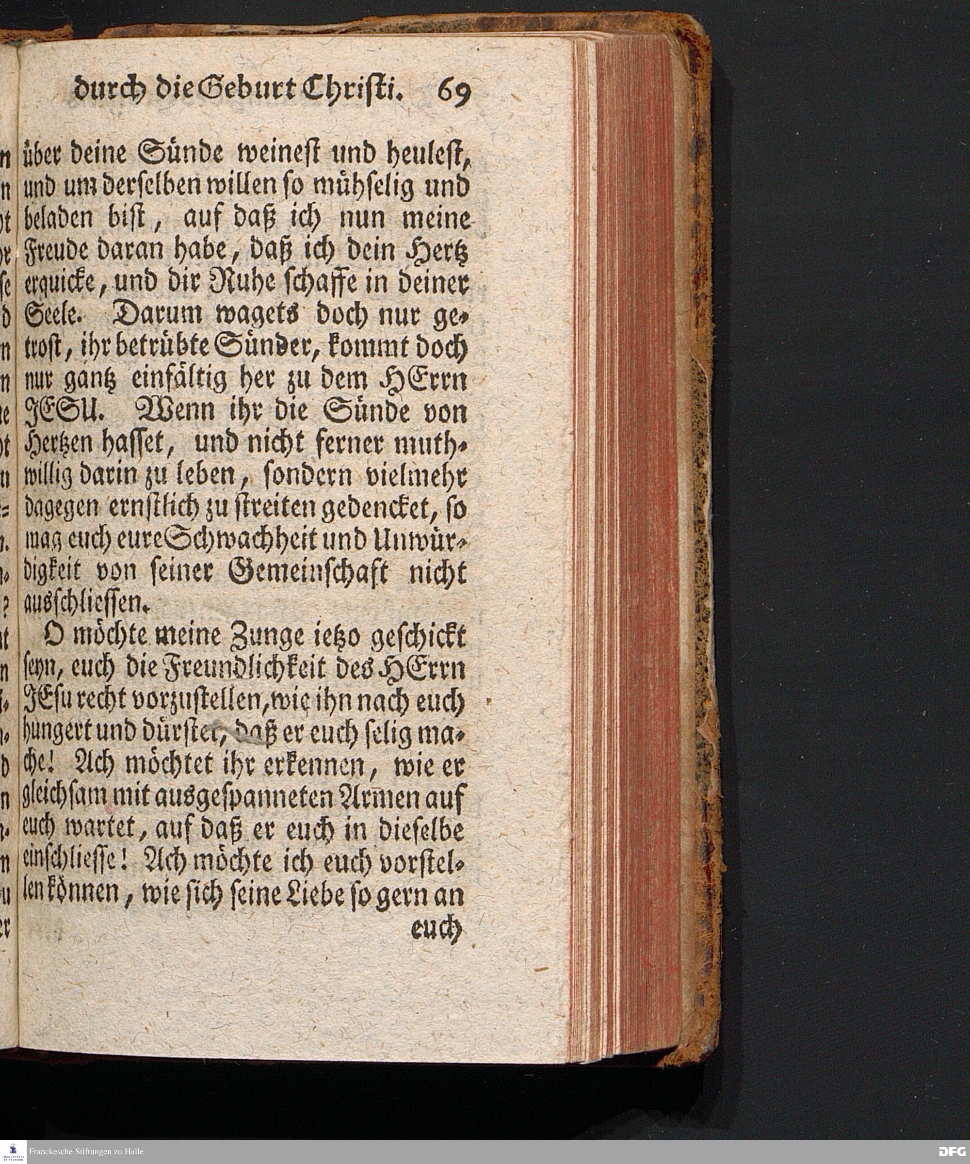 Die Erfreuung des Menschlichen Hertzens Durch die Geburt CHRISTI, Am I.Christ=Tage A.1717. In einer Uber den ordentlichen Evangelischen Text Luc.II, 1=14. In der Stadt=Kirchen zu Blaubeuren im Hertzogthum Würtemberg Auf Erfordern Sr.Hochwürden des jetzigen Herrn Prälaten und gantzen Ministerii daselbst, gehaltenen Predigt vorgestellet Und auf Begehren zum Druck gegeben von August Hermann Francken, S.Theol.Prof.Past.und Scholarcha zu Halle im Hertzogthum Magdeburg. Vierte Auflage, Nach dem zu Ulm gedruckten Exemplar. HALLE, gedruckt im Wäysen=Hause, 1740.