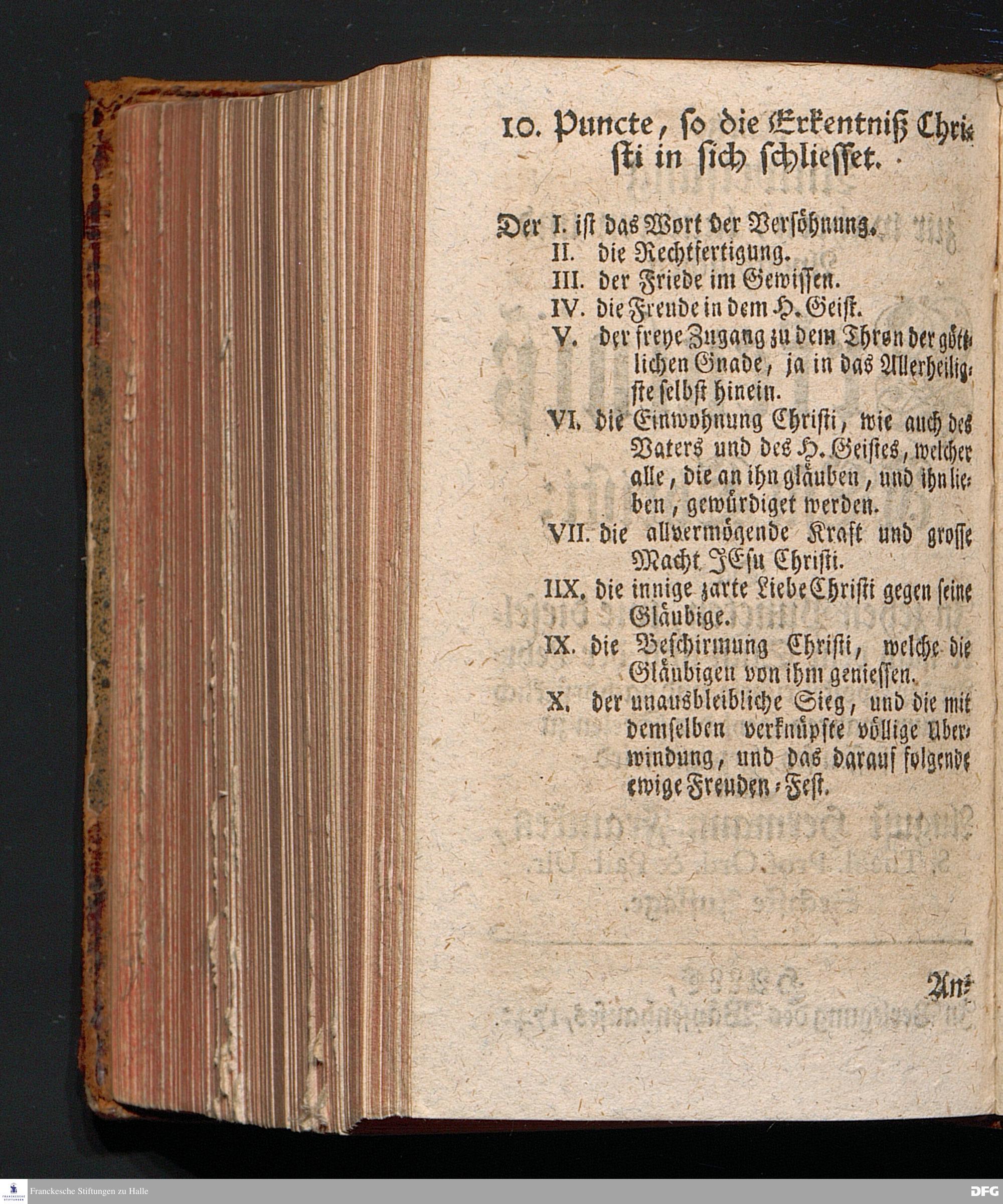 Kurtze Anweisung zur wahren, lauteren und Apostolischen Erkentniß JEsu Christi; Da In zehen Puncten, wie dieselbe nach dem Sinn und der Lehr=Art der Apostel richtig und nachdrücklich zum wahren Heyl der Seelen zu fassen sey, gezeiget wird Von August Hermann Francken, S.Theol.Prof.Ord.& Past.Ulr. Sechste Auflage. HALLE, In Verlegung des Wäysenhauses, 1742.