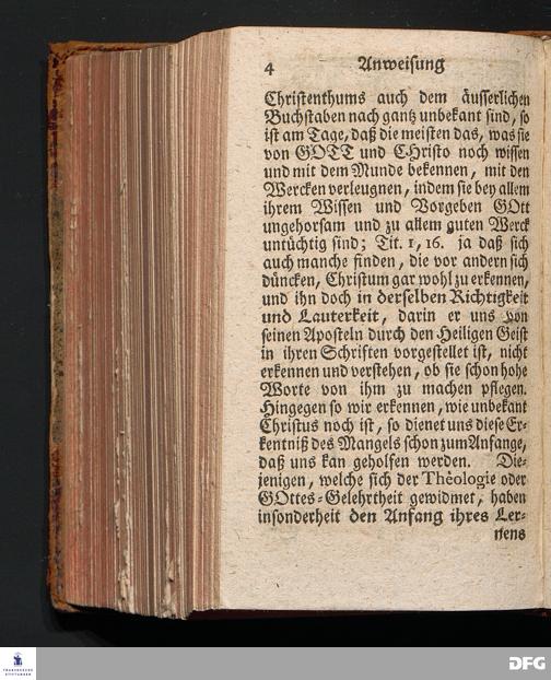 Kurtze Anweisung zur wahren, lauteren und Apostolischen Erkentniß JEsu Christi; Da In zehen Puncten, wie dieselbe nach dem Sinn und der Lehr=Art der Apostel richtig und nachdrücklich zum wahren Heyl der Seelen zu fassen sey, gezeiget wird Von August Hermann Francken, S.Theol.Prof.Ord.& Past.Ulr. Sechste Auflage. HALLE, In Verlegung des Wäysenhauses, 1742.