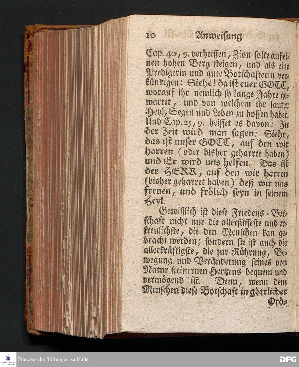 Kurtze Anweisung zur wahren, lauteren und Apostolischen Erkentniß JEsu Christi; Da In zehen Puncten, wie dieselbe nach dem Sinn und der Lehr=Art der Apostel richtig und nachdrücklich zum wahren Heyl der Seelen zu fassen sey, gezeiget wird Von August Hermann Francken, S.Theol.Prof.Ord.& Past.Ulr. Sechste Auflage. HALLE, In Verlegung des Wäysenhauses, 1742.