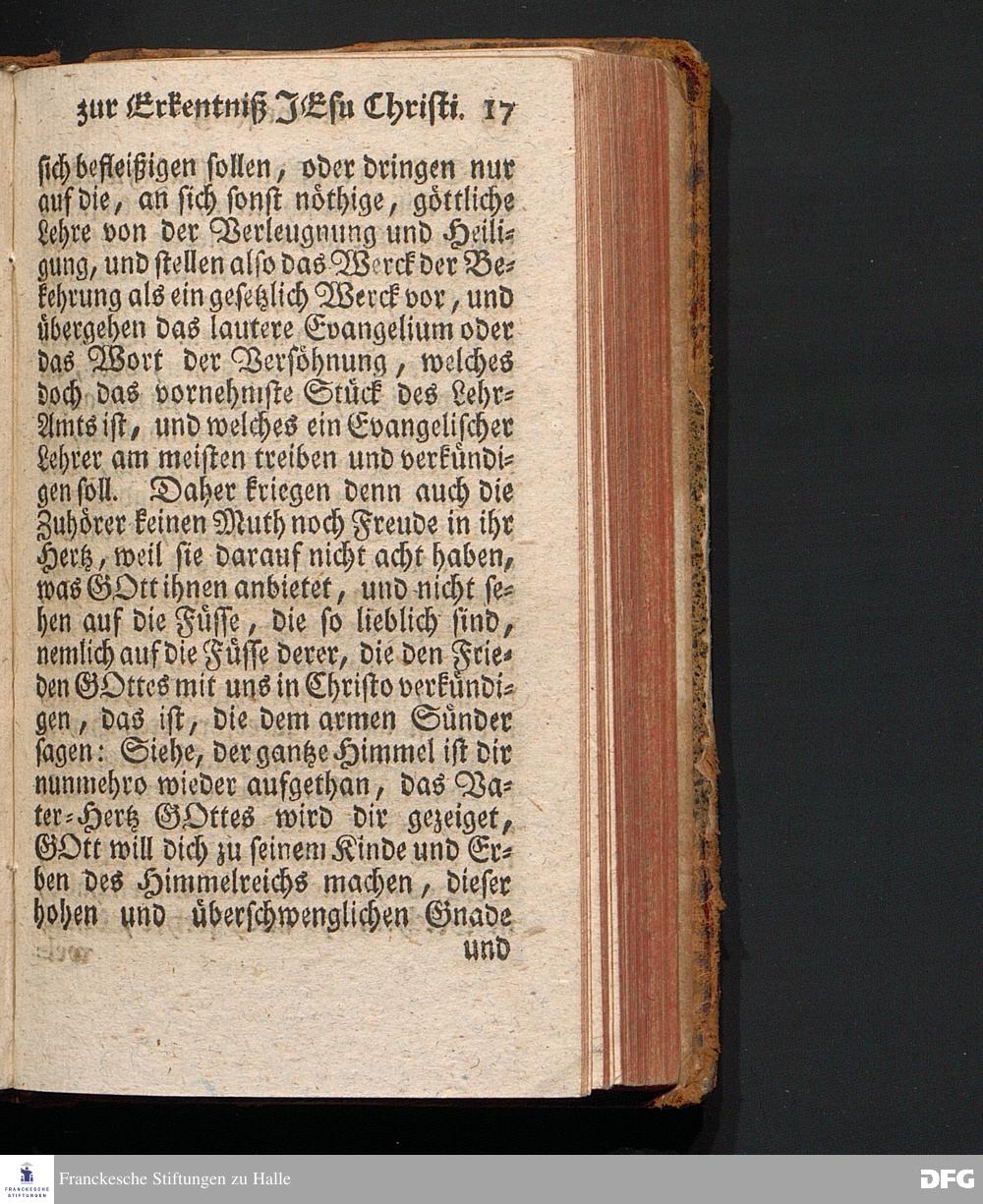 Kurtze Anweisung zur wahren, lauteren und Apostolischen Erkentniß JEsu Christi; Da In zehen Puncten, wie dieselbe nach dem Sinn und der Lehr=Art der Apostel richtig und nachdrücklich zum wahren Heyl der Seelen zu fassen sey, gezeiget wird Von August Hermann Francken, S.Theol.Prof.Ord.& Past.Ulr. Sechste Auflage. HALLE, In Verlegung des Wäysenhauses, 1742.