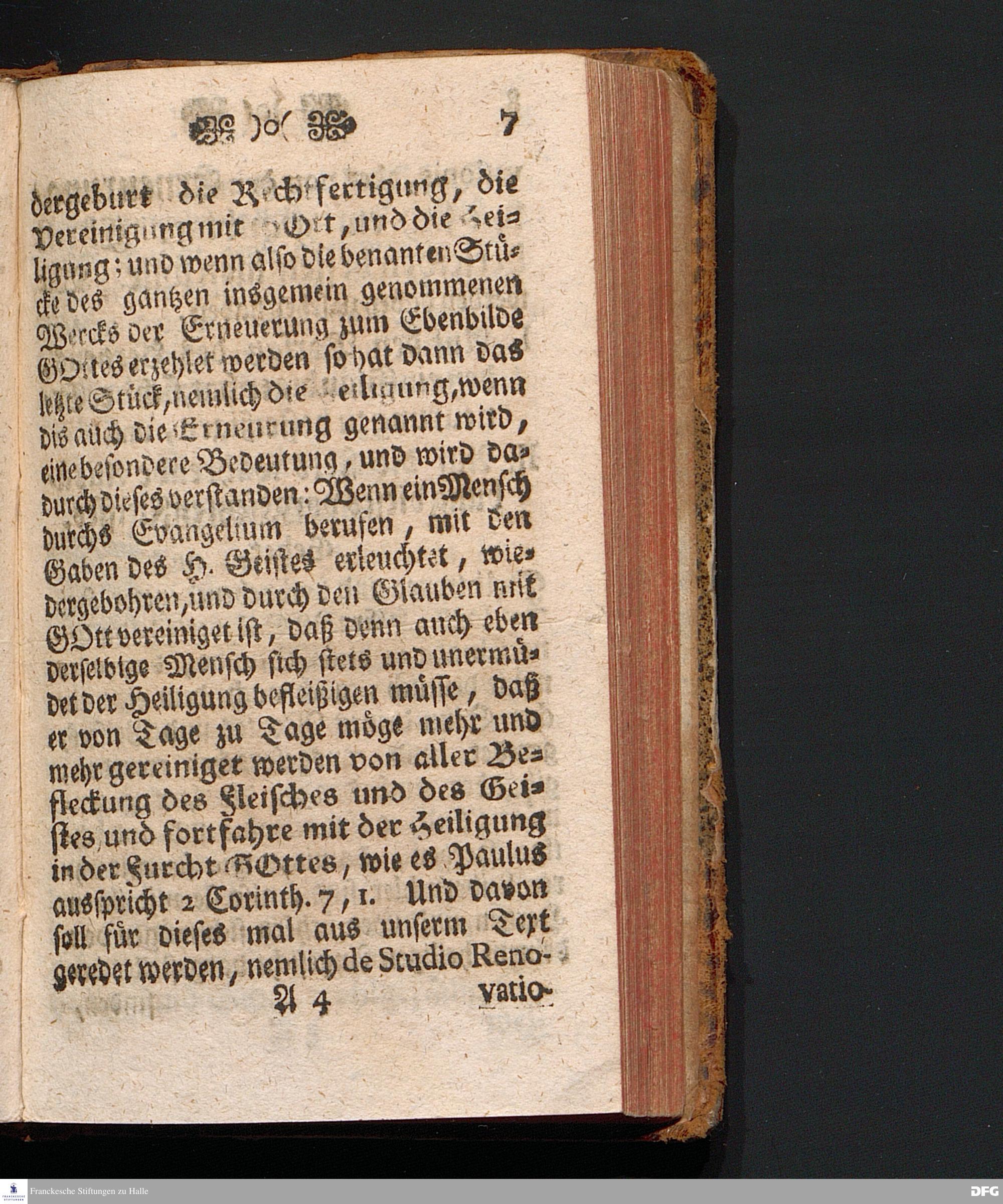 P[B]REVIS INSTITVTIO de STVDIO RENOVATIONIS oder Kurtzer Unterricht von der Erneurung, Wie sich ein jeder Gläubiger derselben nach der Richtschnur Göttlichen Worts befleißigen solle, In einer Predigt über Rom.XII, 1.2. am VII.Sonntage nach Trinitatis, Anno 1709. In der Schul=Kirche zu Halle ertheilet von August Hermann Francken / S.Theol.Prof.Ord.und Past. Die dritte Auflage. HALLE, Im Wäysenhause, 1735.