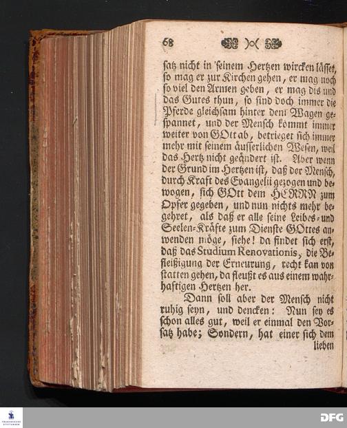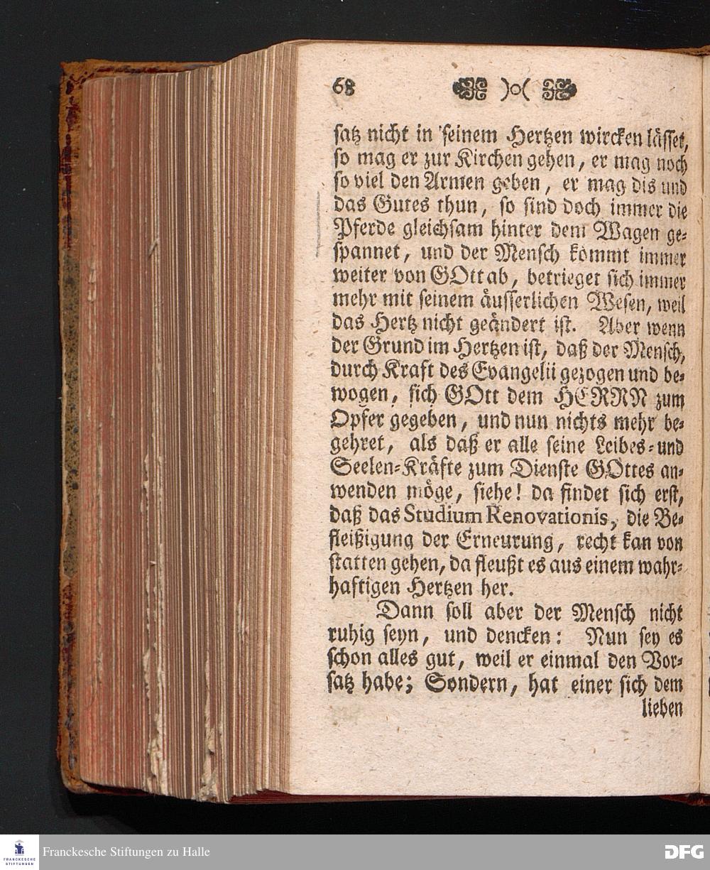 P[B]REVIS INSTITVTIO de STVDIO RENOVATIONIS oder Kurtzer Unterricht von der Erneurung, Wie sich ein jeder Gläubiger derselben nach der Richtschnur Göttlichen Worts befleißigen solle, In einer Predigt über Rom.XII, 1.2. am VII.Sonntage nach Trinitatis, Anno 1709. In der Schul=Kirche zu Halle ertheilet von August Hermann Francken / S.Theol.Prof.Ord.und Past. Die dritte Auflage. HALLE, Im Wäysenhause, 1735.