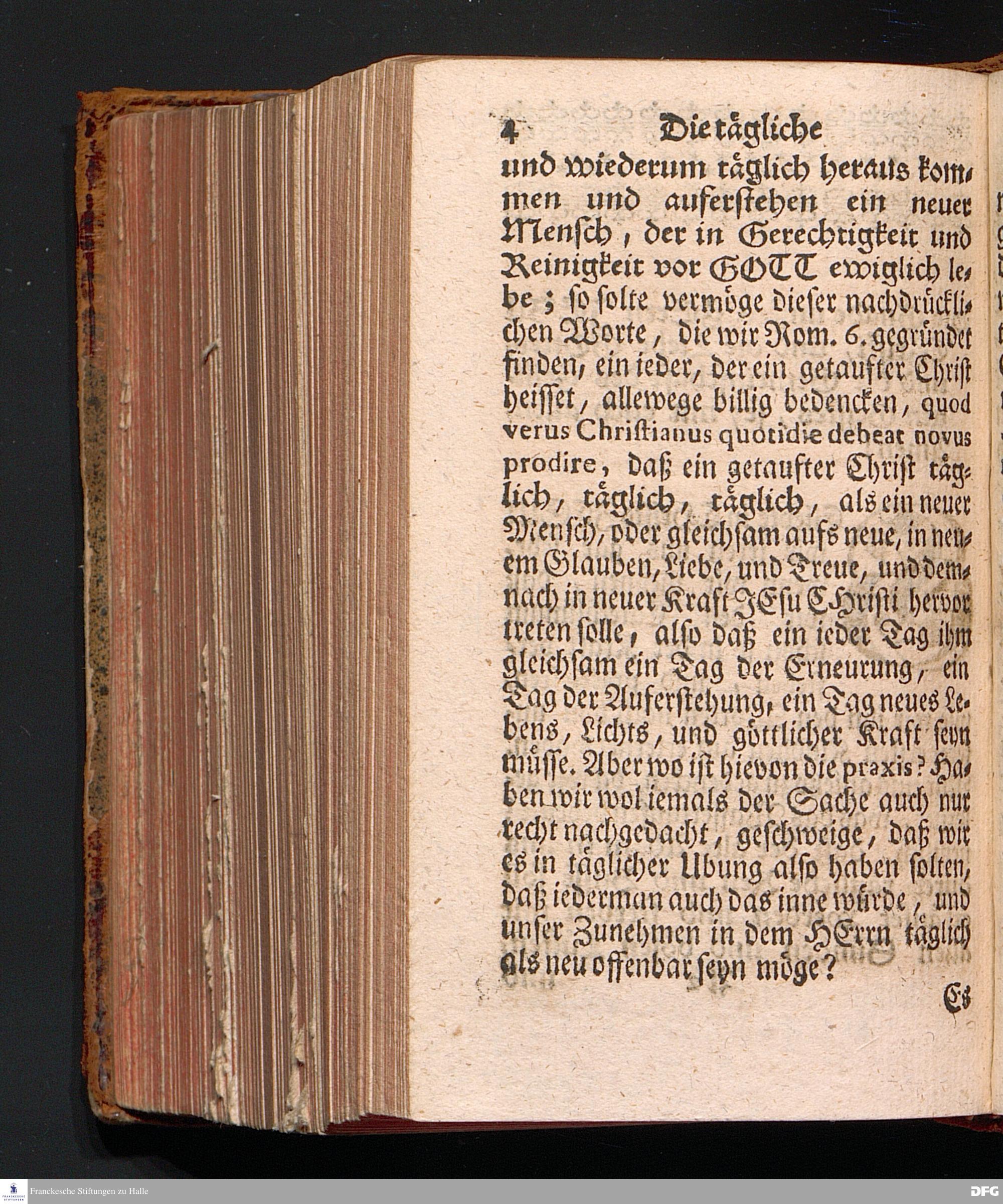 Die Tägliche Erneurung, I) Nach der uns obliegenden Pflicht, II) Nach ihrer wahren Beschaffenheit, III) Nach denen dazu dienlichen Mitteln. Aus der Epistolischen Lection Ephes.IV, 22-28. Am XIX.Sonnt.nach Trinitatis Anno MDCCXIII. In der Schul=Kirche zu Halle vorgestellet von August Hermann Francken, S.Theol.Prof.Ord.Past.Vlric.& Scholarcha. Dritte Auflage. HALLE, In Verlegung des Wäysen=Hauses. MDCCXXXII.
