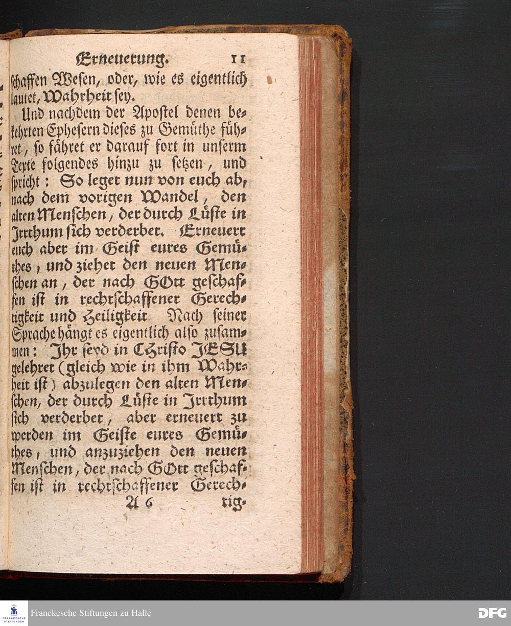 Die Tägliche Erneurung, I) Nach der uns obliegenden Pflicht, II) Nach ihrer wahren Beschaffenheit, III) Nach denen dazu dienlichen Mitteln. Aus der Epistolischen Lection Ephes.IV, 22-28. Am XIX.Sonnt.nach Trinitatis Anno MDCCXIII. In der Schul=Kirche zu Halle vorgestellet von August Hermann Francken, S.Theol.Prof.Ord.Past.Vlric.& Scholarcha. Dritte Auflage. HALLE, In Verlegung des Wäysen=Hauses. MDCCXXXII.