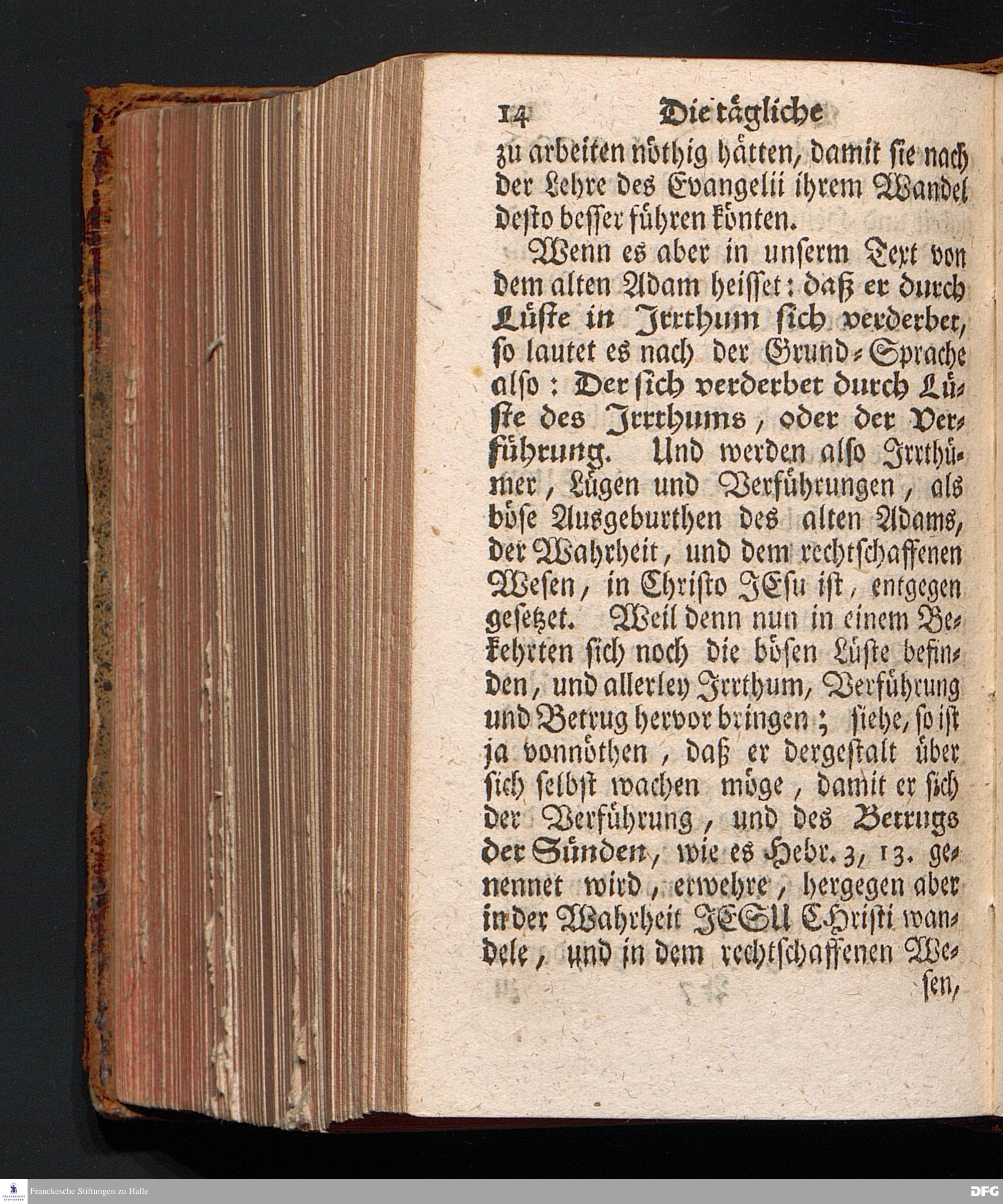 Die Tägliche Erneurung, I) Nach der uns obliegenden Pflicht, II) Nach ihrer wahren Beschaffenheit, III) Nach denen dazu dienlichen Mitteln. Aus der Epistolischen Lection Ephes.IV, 22-28. Am XIX.Sonnt.nach Trinitatis Anno MDCCXIII. In der Schul=Kirche zu Halle vorgestellet von August Hermann Francken, S.Theol.Prof.Ord.Past.Vlric.& Scholarcha. Dritte Auflage. HALLE, In Verlegung des Wäysen=Hauses. MDCCXXXII.