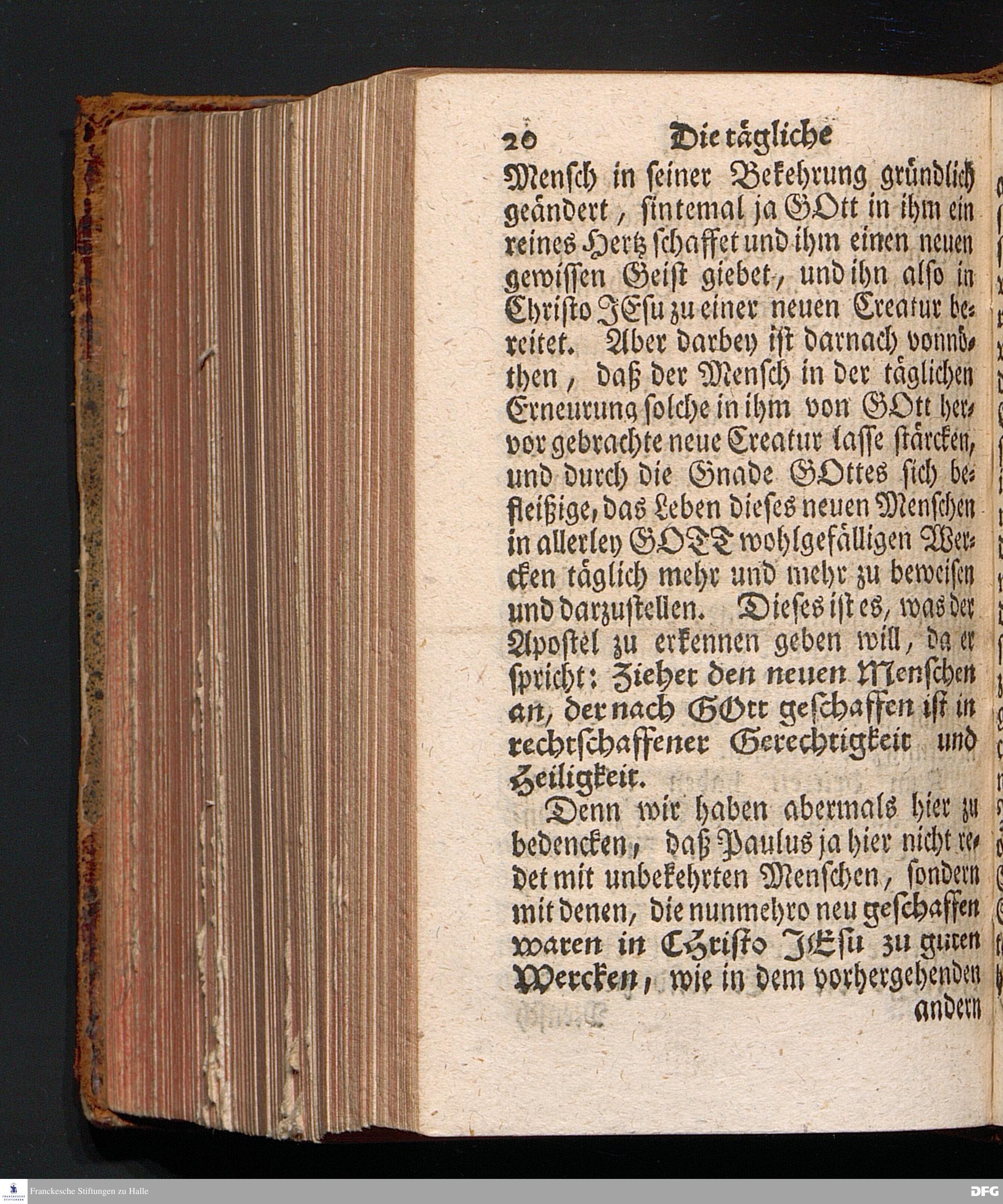 Die Tägliche Erneurung, I) Nach der uns obliegenden Pflicht, II) Nach ihrer wahren Beschaffenheit, III) Nach denen dazu dienlichen Mitteln. Aus der Epistolischen Lection Ephes.IV, 22-28. Am XIX.Sonnt.nach Trinitatis Anno MDCCXIII. In der Schul=Kirche zu Halle vorgestellet von August Hermann Francken, S.Theol.Prof.Ord.Past.Vlric.& Scholarcha. Dritte Auflage. HALLE, In Verlegung des Wäysen=Hauses. MDCCXXXII.