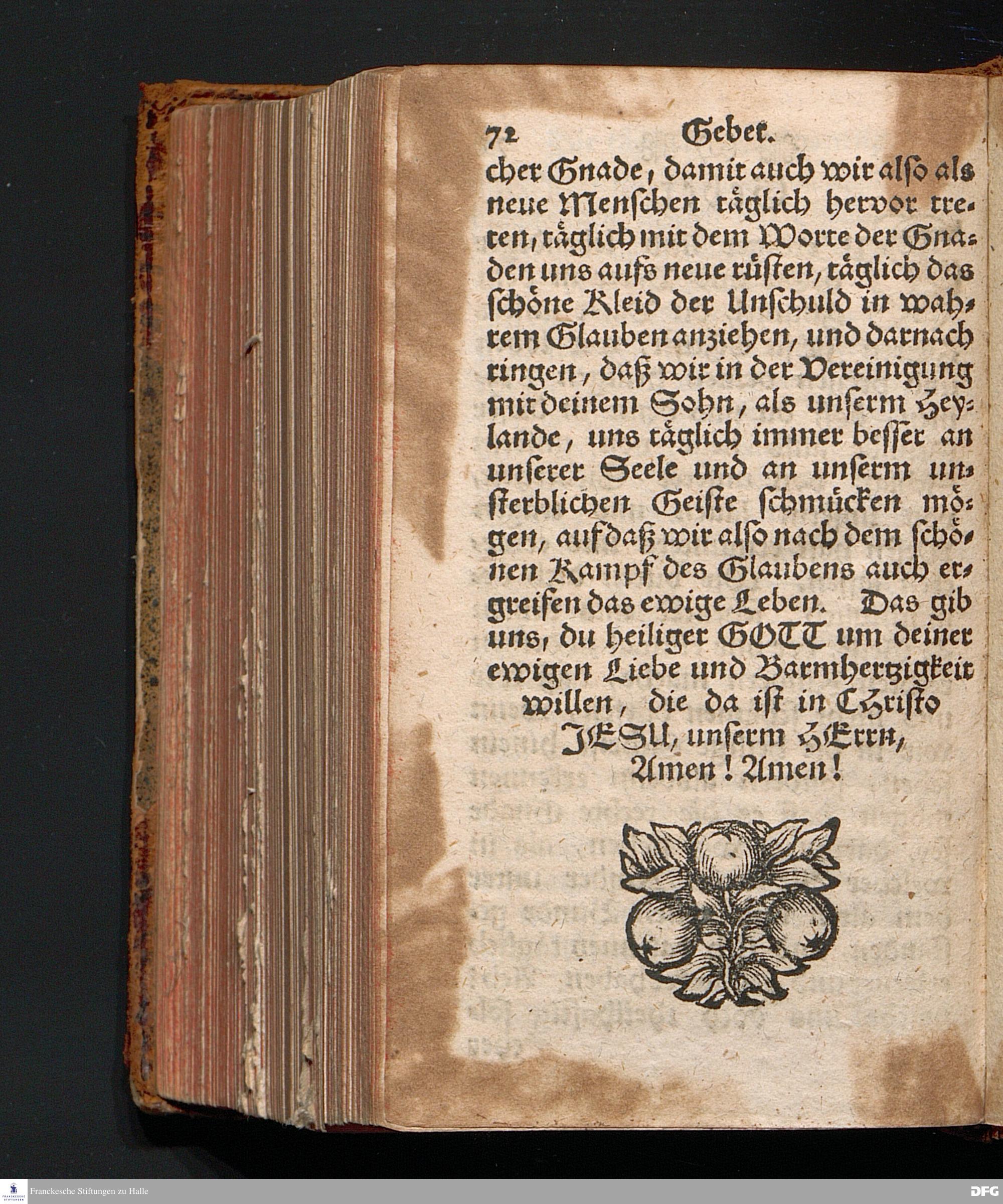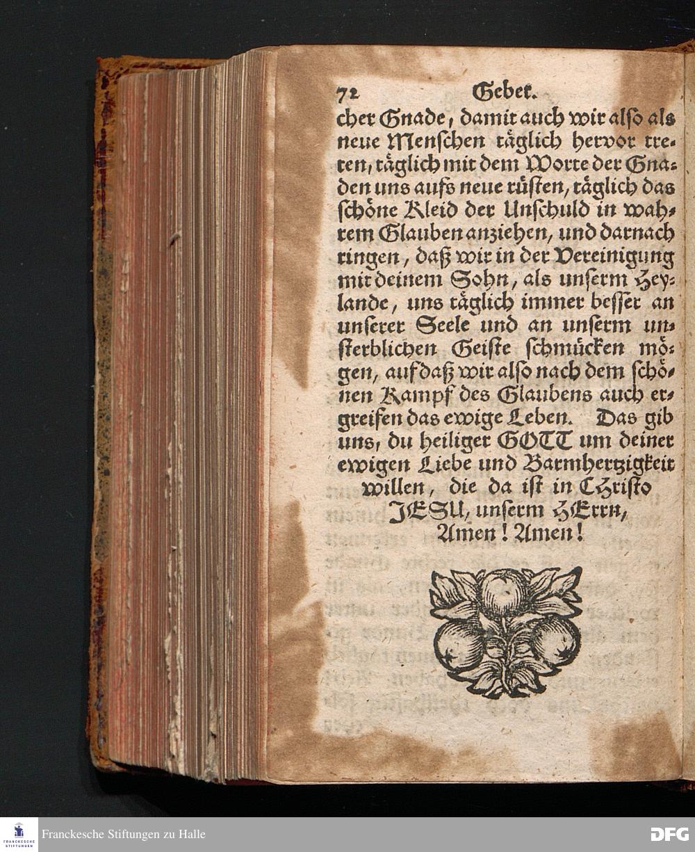 Die Tägliche Erneurung, I) Nach der uns obliegenden Pflicht, II) Nach ihrer wahren Beschaffenheit, III) Nach denen dazu dienlichen Mitteln. Aus der Epistolischen Lection Ephes.IV, 22-28. Am XIX.Sonnt.nach Trinitatis Anno MDCCXIII. In der Schul=Kirche zu Halle vorgestellet von August Hermann Francken, S.Theol.Prof.Ord.Past.Vlric.& Scholarcha. Dritte Auflage. HALLE, In Verlegung des Wäysen=Hauses. MDCCXXXII.
