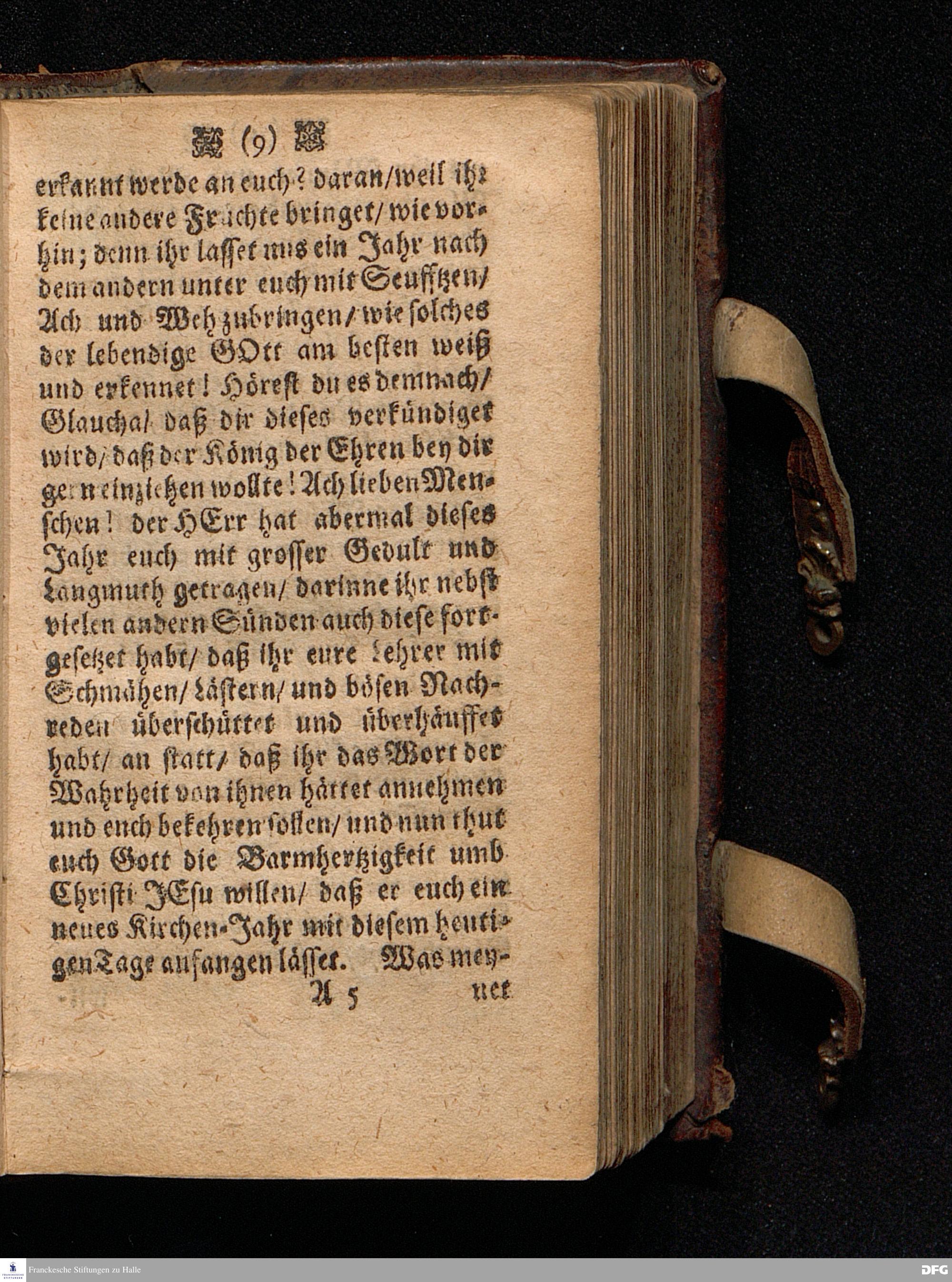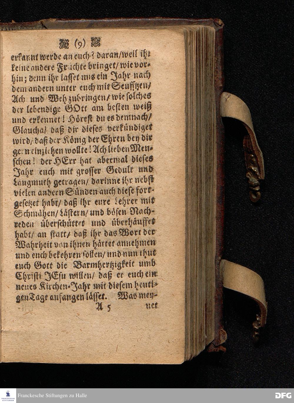 Das Hosianna / Als Ein Wort des Gebets / des Lobes und der Erweckung / Am ersten Soñtag des Advents Anno 1698, Uber das Evangelium Matth.XXI, 1==9, In der St.Georgen=Kirche zu Glaucha an Halle vorgestellet von M.August Hermann Francken / SS.Theol.PP.Ord.& P.Glauch. HALLE / 1700.