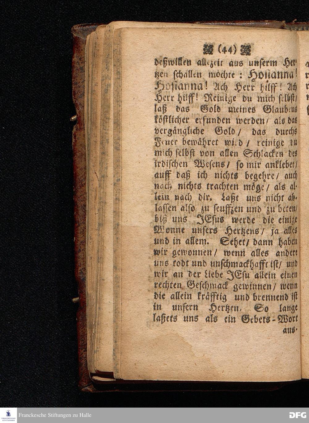 Das Hosianna / Als Ein Wort des Gebets / des Lobes und der Erweckung / Am ersten Soñtag des Advents Anno 1698, Uber das Evangelium Matth.XXI, 1==9, In der St.Georgen=Kirche zu Glaucha an Halle vorgestellet von M.August Hermann Francken / SS.Theol.PP.Ord.& P.Glauch. HALLE / 1700.
