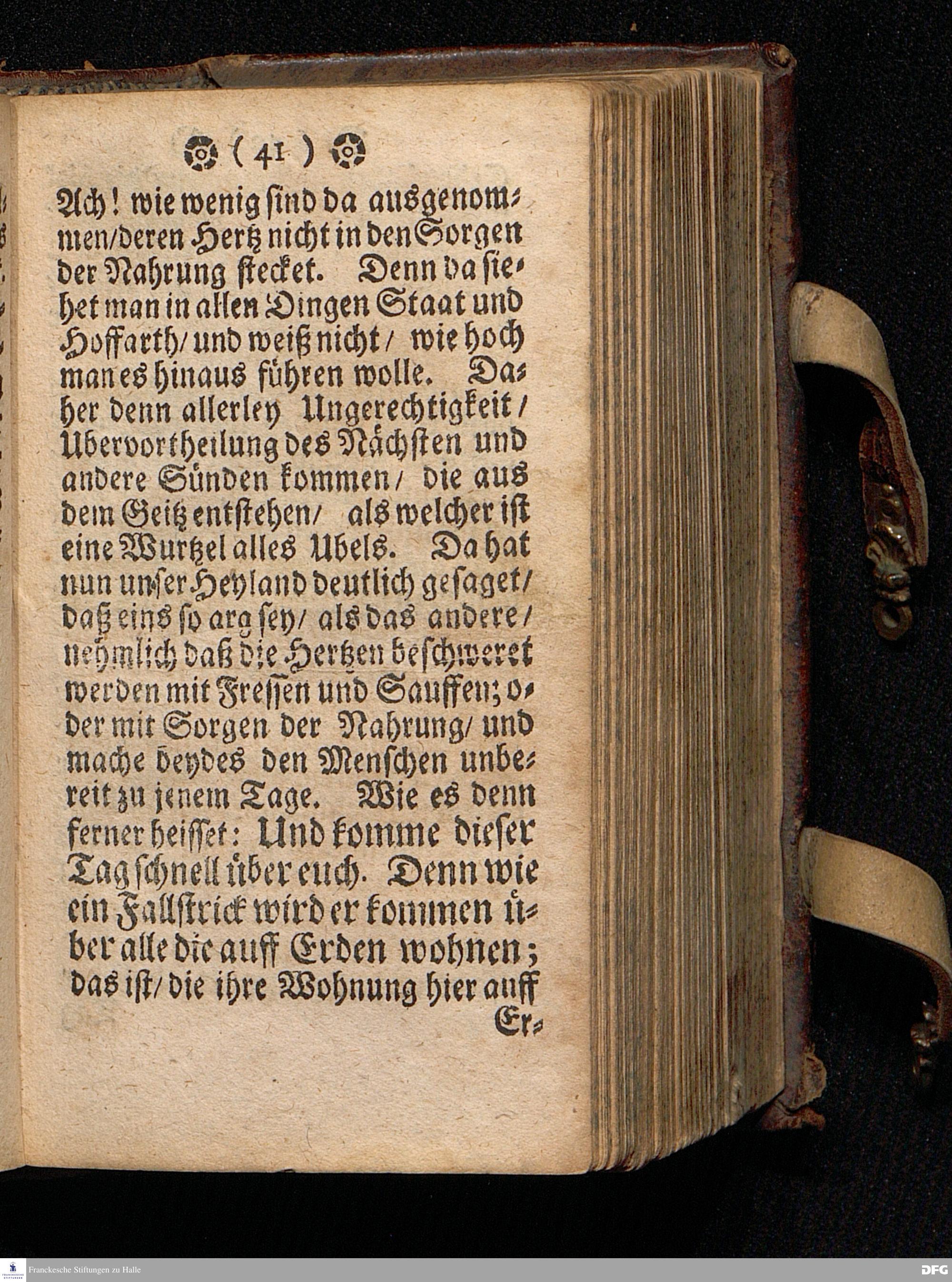 Die Grossen Trübsalen / welche vor der Zukunfft CHristi werden vorher gehen / und die Bereitung zu denselben. In einer Predigt Am 2.Advent=Sonntage Uber das Evangelium Luc.XXI, v.25==36. Anno 1696. In der St.Georgen Kirche zu Glaucha an Halle vorgestellet von M.August Hermann Francken / SS.Theol.P.Ord.& P.Glauch. HALLE / Gedruckt bey Ch.Henck[el].U.B.
