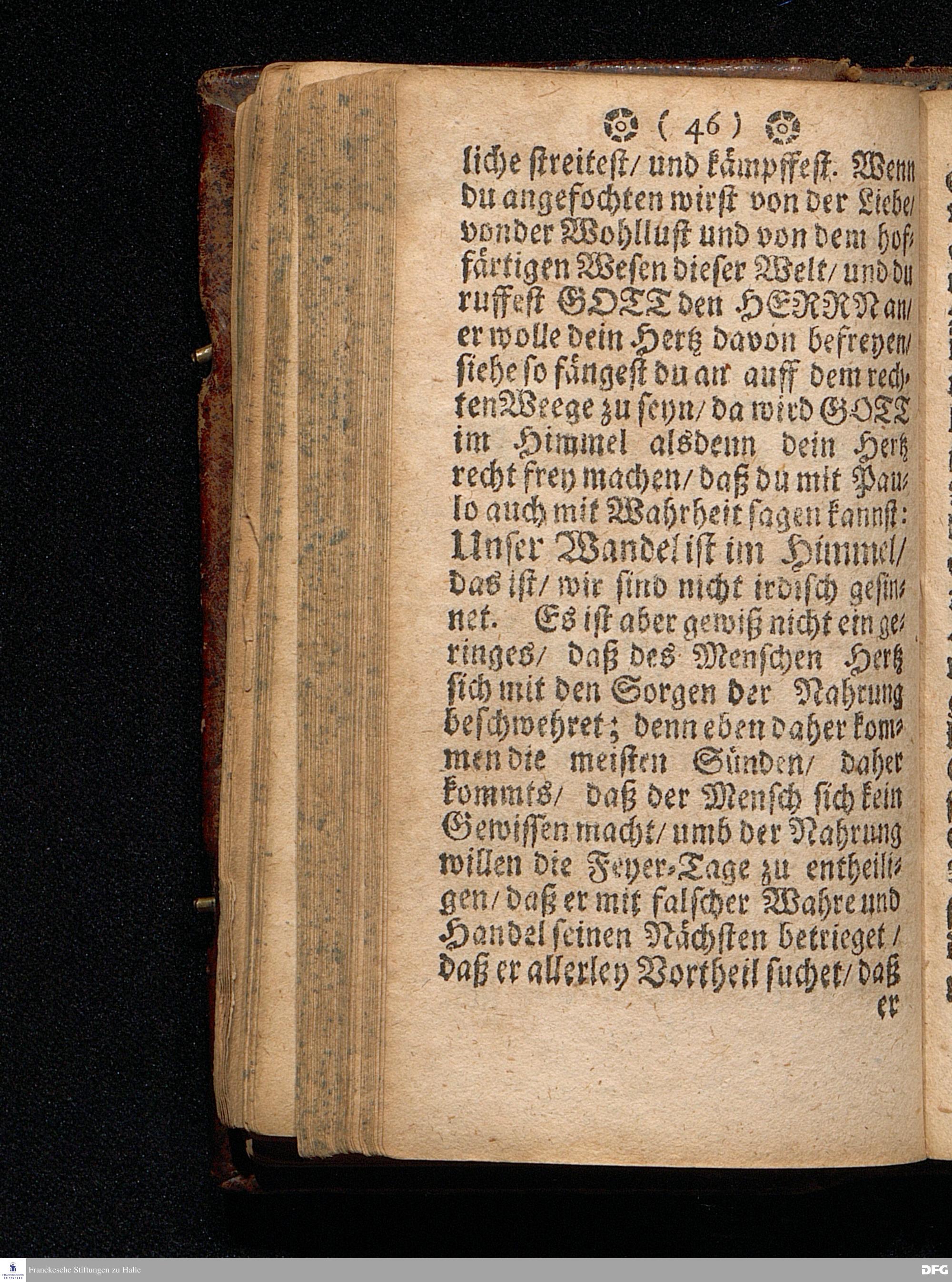 Die Grossen Trübsalen / welche vor der Zukunfft CHristi werden vorher gehen / und die Bereitung zu denselben. In einer Predigt Am 2.Advent=Sonntage Uber das Evangelium Luc.XXI, v.25==36. Anno 1696. In der St.Georgen Kirche zu Glaucha an Halle vorgestellet von M.August Hermann Francken / SS.Theol.P.Ord.& P.Glauch. HALLE / Gedruckt bey Ch.Henck[el].U.B.
