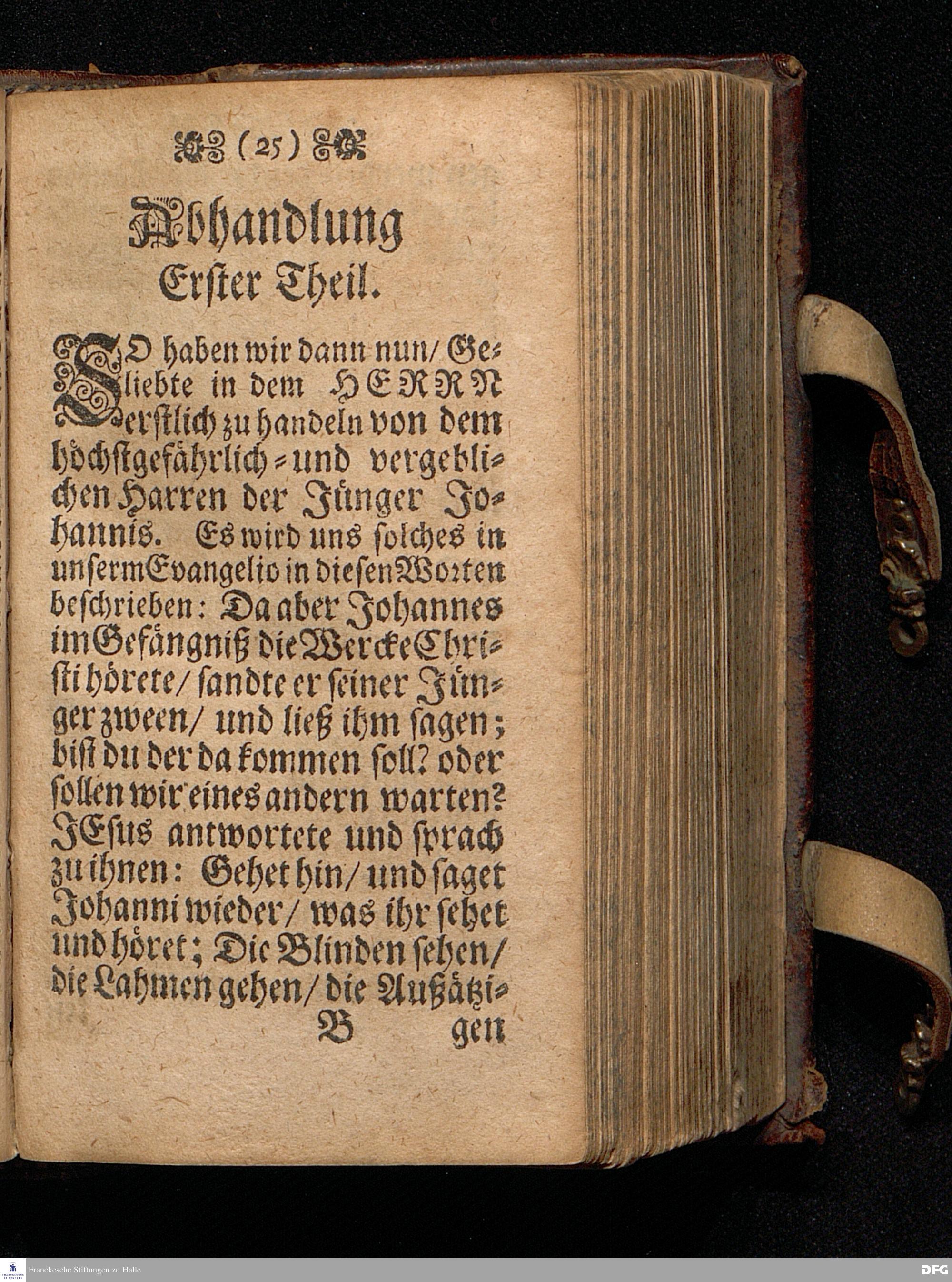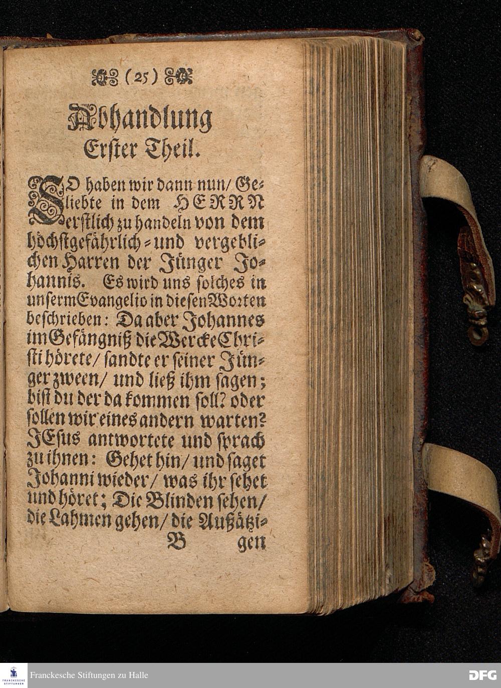 Das Gefährliche und verdammliche Harren auff die Offenbarung JEsu CHristi / In dem Exempel der Jünger Johannis und des Jüdischen Volcks vorgestellet Uber das Evangelium Matth.XI, v.2 [-10]. Am 3ten Sonntage des Advents A.M.DC.XCIIX. In der St.Georgen=Kirche zu Glaucha an Halle / von M.August Hermann Francken / SS.Theol.Gr.& OO.LL.PP. Ord.& P.Glauch. HALLE / Druckts Christian Henckel.