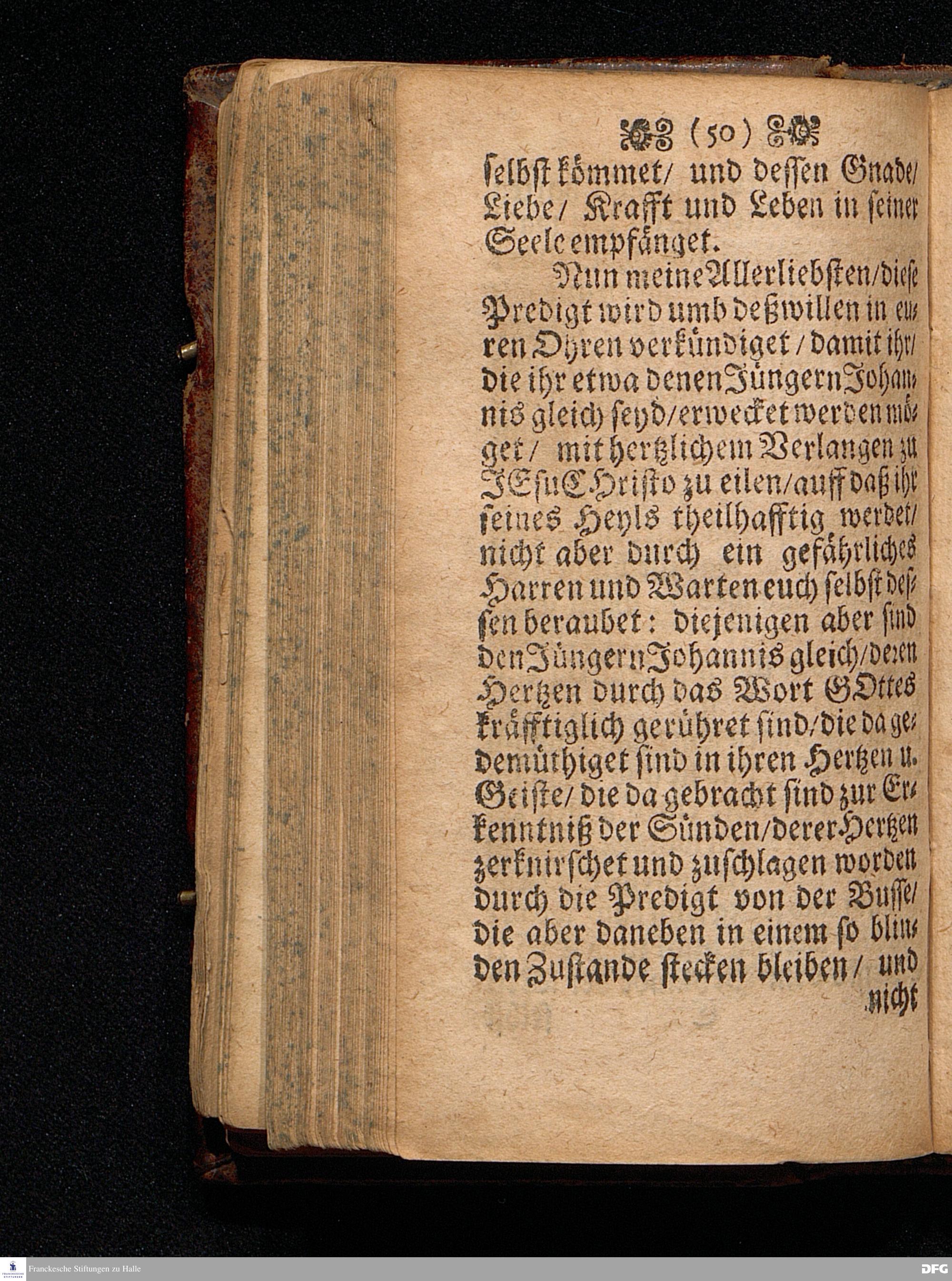 Das Gefährliche und verdammliche Harren auff die Offenbarung JEsu CHristi / In dem Exempel der Jünger Johannis und des Jüdischen Volcks vorgestellet Uber das Evangelium Matth.XI, v.2 [-10]. Am 3ten Sonntage des Advents A.M.DC.XCIIX. In der St.Georgen=Kirche zu Glaucha an Halle / von M.August Hermann Francken / SS.Theol.Gr.& OO.LL.PP. Ord.& P.Glauch. HALLE / Druckts Christian Henckel.