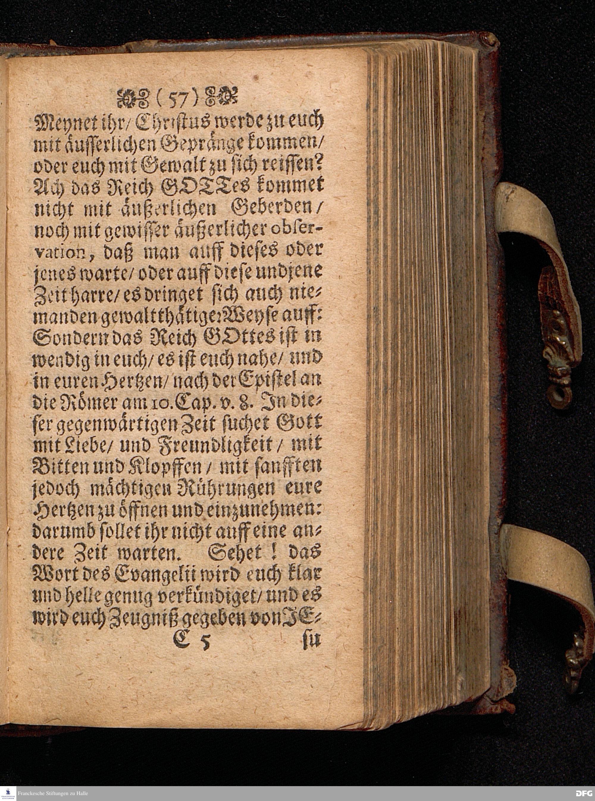 Das Gefährliche und verdammliche Harren auff die Offenbarung JEsu CHristi / In dem Exempel der Jünger Johannis und des Jüdischen Volcks vorgestellet Uber das Evangelium Matth.XI, v.2 [-10]. Am 3ten Sonntage des Advents A.M.DC.XCIIX. In der St.Georgen=Kirche zu Glaucha an Halle / von M.August Hermann Francken / SS.Theol.Gr.& OO.LL.PP. Ord.& P.Glauch. HALLE / Druckts Christian Henckel.