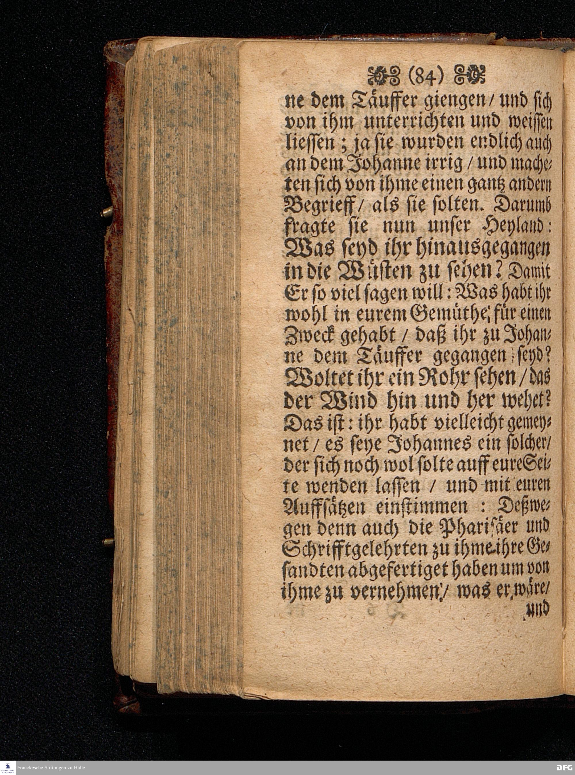 Das Gefährliche und verdammliche Harren auff die Offenbarung JEsu CHristi / In dem Exempel der Jünger Johannis und des Jüdischen Volcks vorgestellet Uber das Evangelium Matth.XI, v.2 [-10]. Am 3ten Sonntage des Advents A.M.DC.XCIIX. In der St.Georgen=Kirche zu Glaucha an Halle / von M.August Hermann Francken / SS.Theol.Gr.& OO.LL.PP. Ord.& P.Glauch. HALLE / Druckts Christian Henckel.