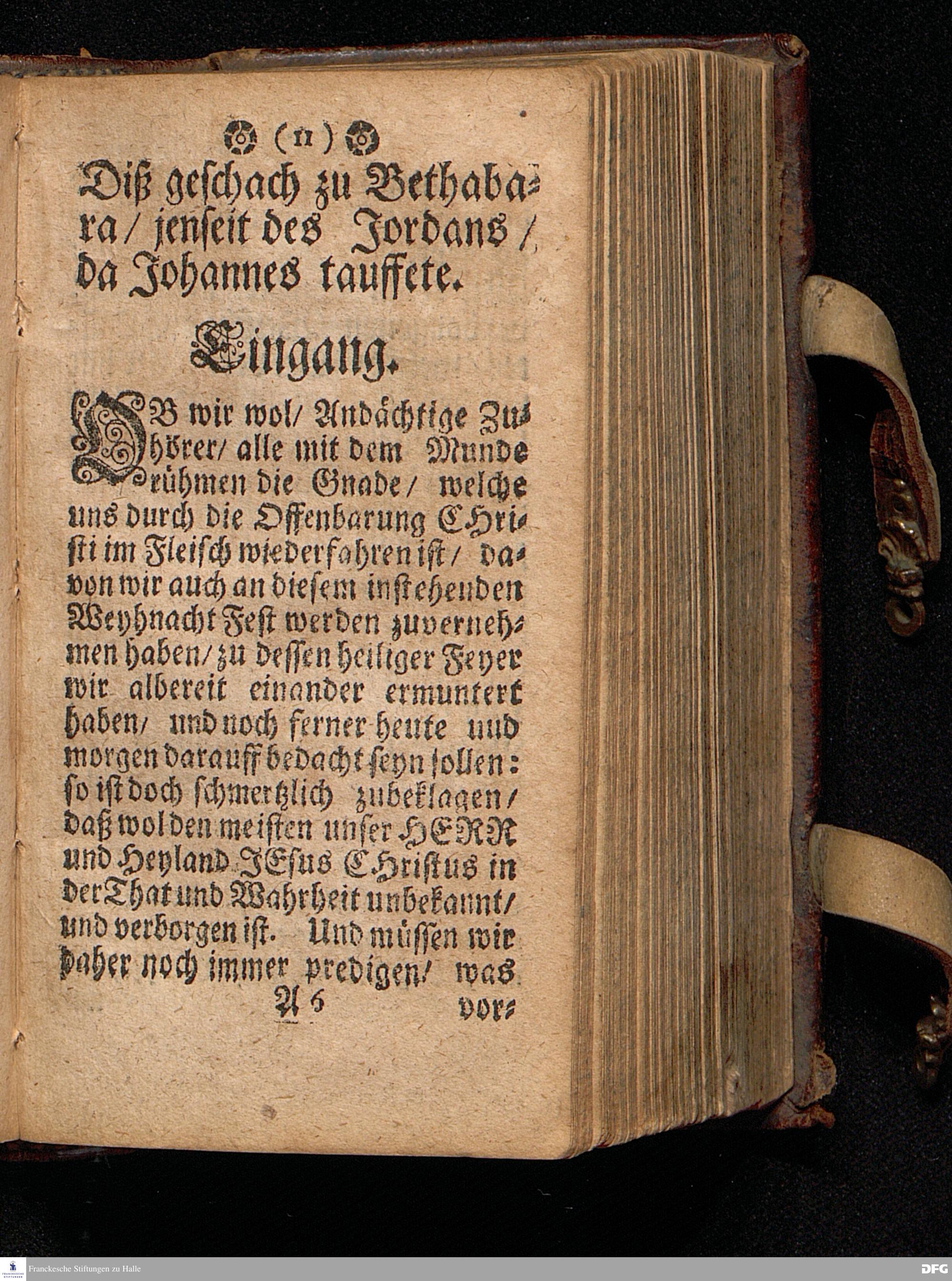 Der vor der Welt unbekandte / den Seinigen aber wohl bekandte CHristus. In einer Predigt Am 4. Advent=Sonntage Uber das Evangelium Joh. I. V.19--28. Anno 1695. In der St.Georgen Kirche zu Glaucha an Halle vorgestellet von M.August Hermann Francken / SS.Theol.P.Ord.& P.Glauch. HALLE Druckts Christian Henckel / U.B. J.J.C. 1700.