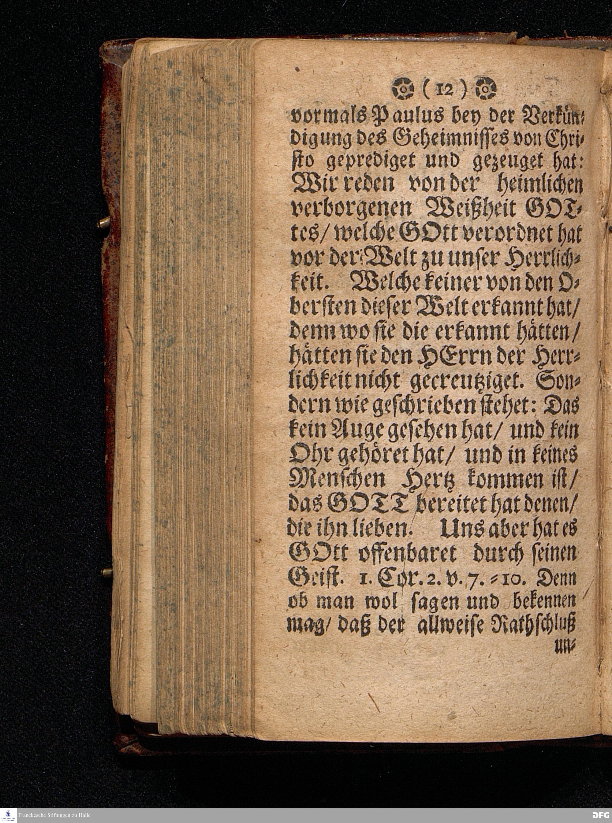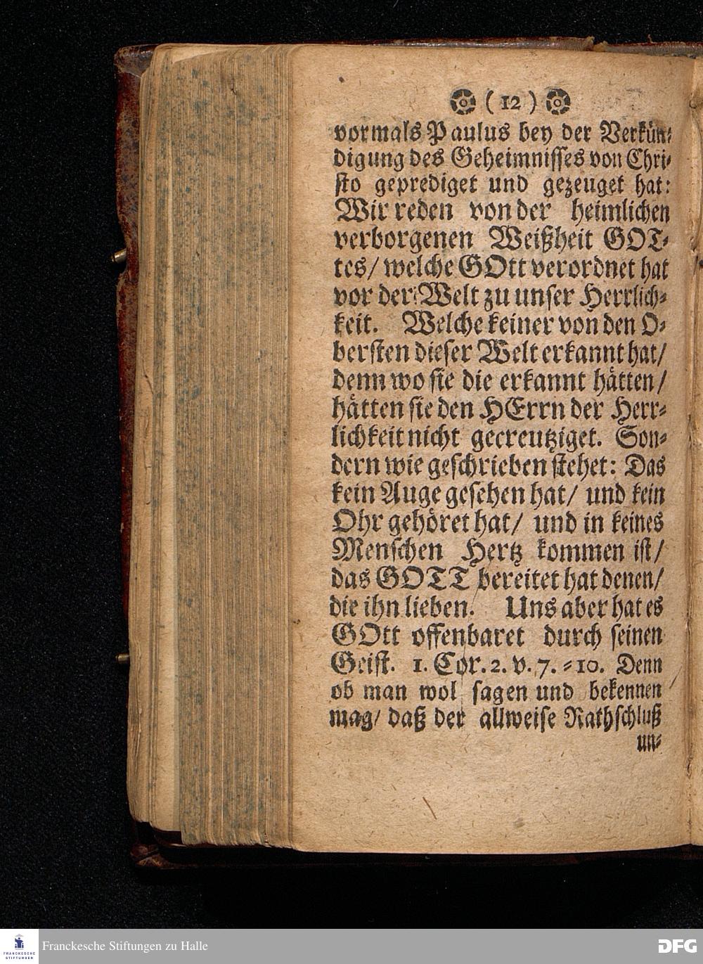 Der vor der Welt unbekandte / den Seinigen aber wohl bekandte CHristus. In einer Predigt Am 4. Advent=Sonntage Uber das Evangelium Joh. I. V.19--28. Anno 1695. In der St.Georgen Kirche zu Glaucha an Halle vorgestellet von M.August Hermann Francken / SS.Theol.P.Ord.& P.Glauch. HALLE Druckts Christian Henckel / U.B. J.J.C. 1700.