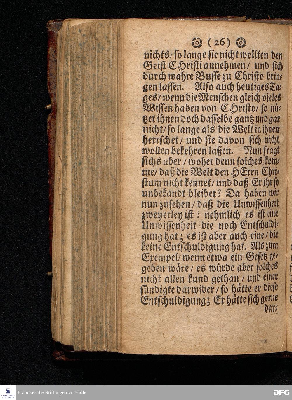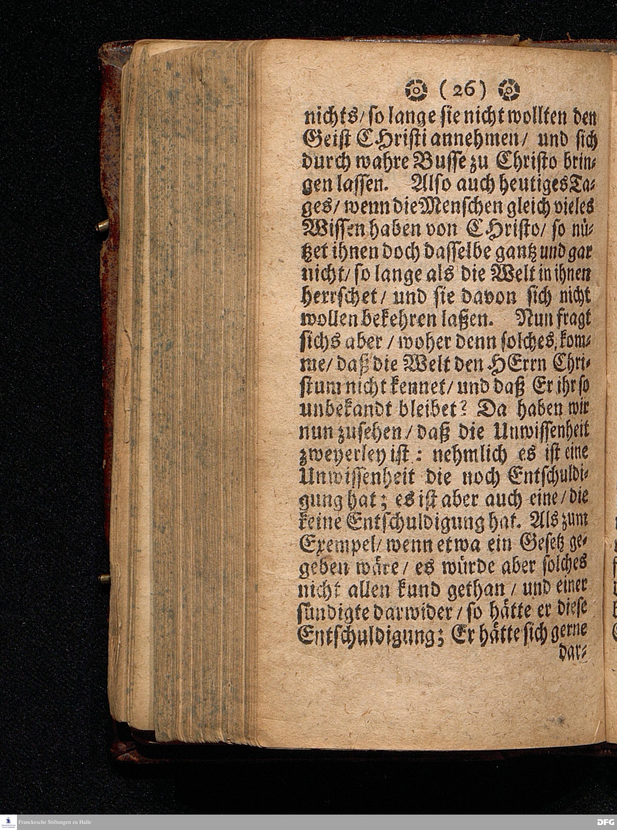 Der vor der Welt unbekandte / den Seinigen aber wohl bekandte CHristus. In einer Predigt Am 4. Advent=Sonntage Uber das Evangelium Joh. I. V.19--28. Anno 1695. In der St.Georgen Kirche zu Glaucha an Halle vorgestellet von M.August Hermann Francken / SS.Theol.P.Ord.& P.Glauch. HALLE Druckts Christian Henckel / U.B. J.J.C. 1700.