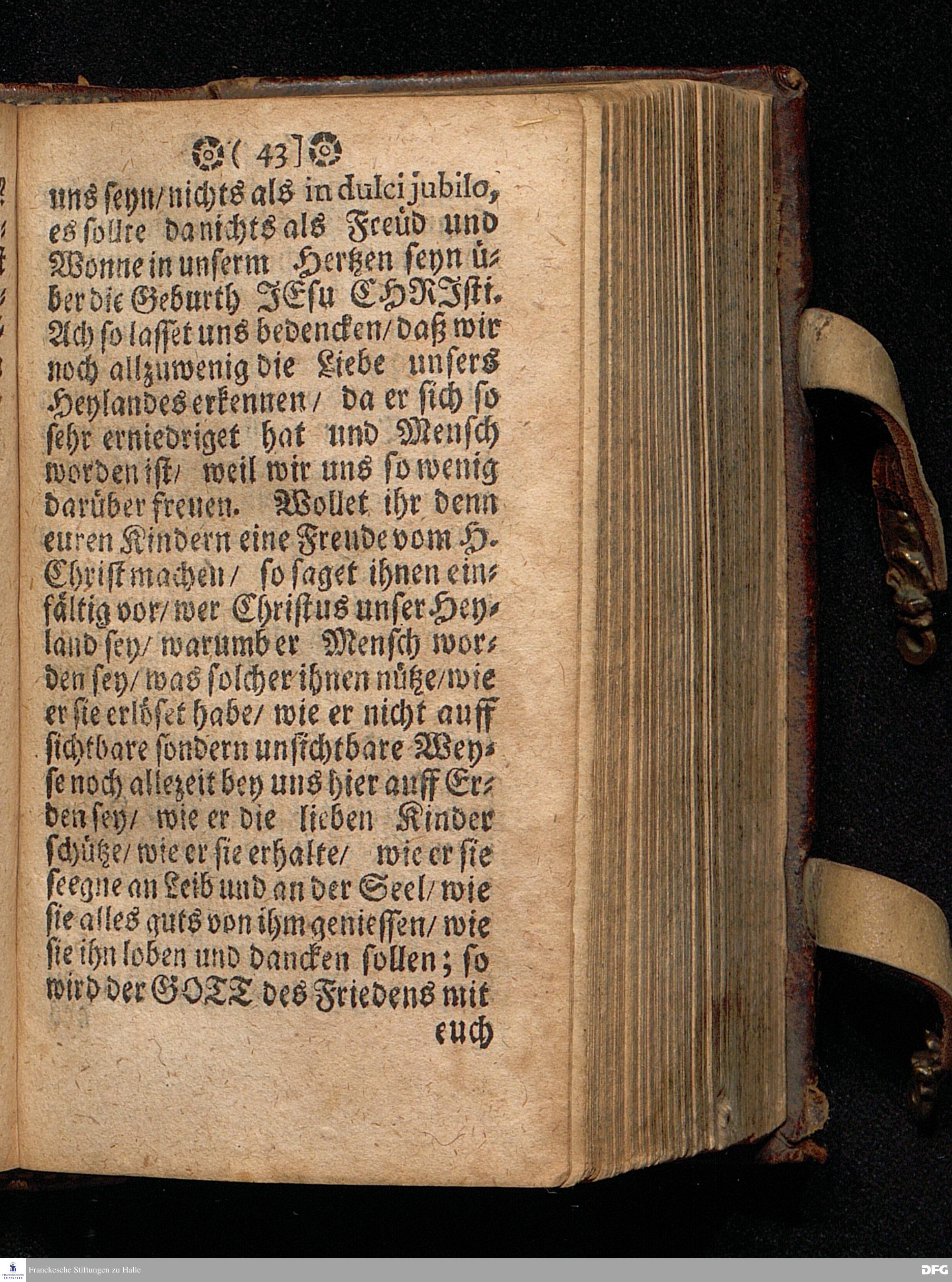 Der vor der Welt unbekandte / den Seinigen aber wohl bekandte CHristus. In einer Predigt Am 4. Advent=Sonntage Uber das Evangelium Joh. I. V.19--28. Anno 1695. In der St.Georgen Kirche zu Glaucha an Halle vorgestellet von M.August Hermann Francken / SS.Theol.P.Ord.& P.Glauch. HALLE Druckts Christian Henckel / U.B. J.J.C. 1700.
