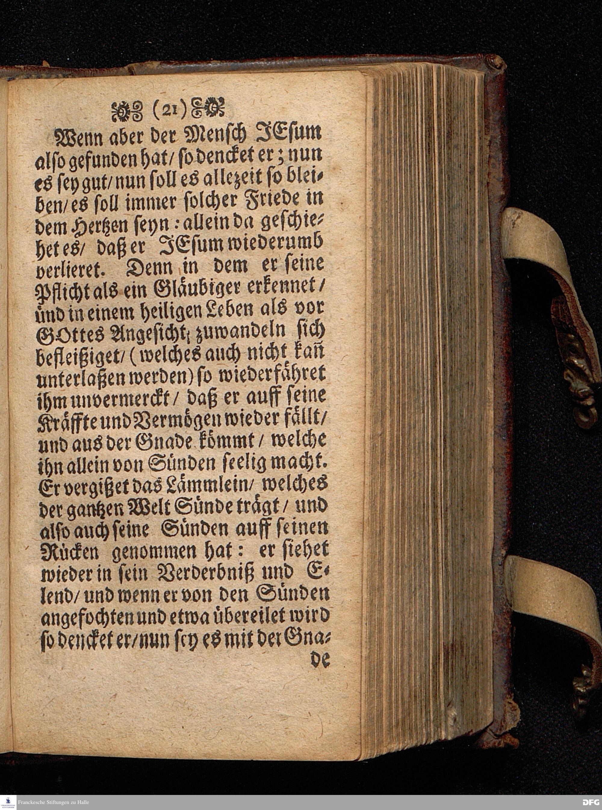 Das Schmertzhaffte Suchen unsers Herrn JEsu / Am I.Sonntag Epiphan. Anno 1697. In einer Predigt Uber das Evangelium Luc.II.V, 41--52 In der St.Georgen=Kirche zu Glaucha an Halle vorgestellet / von M.August Hermann Francken / SS.Theol.P.Ord.& P.Glauch. HALLE / Gedruckt bey Christian Henckeln / Univers.Buchdr.1700.