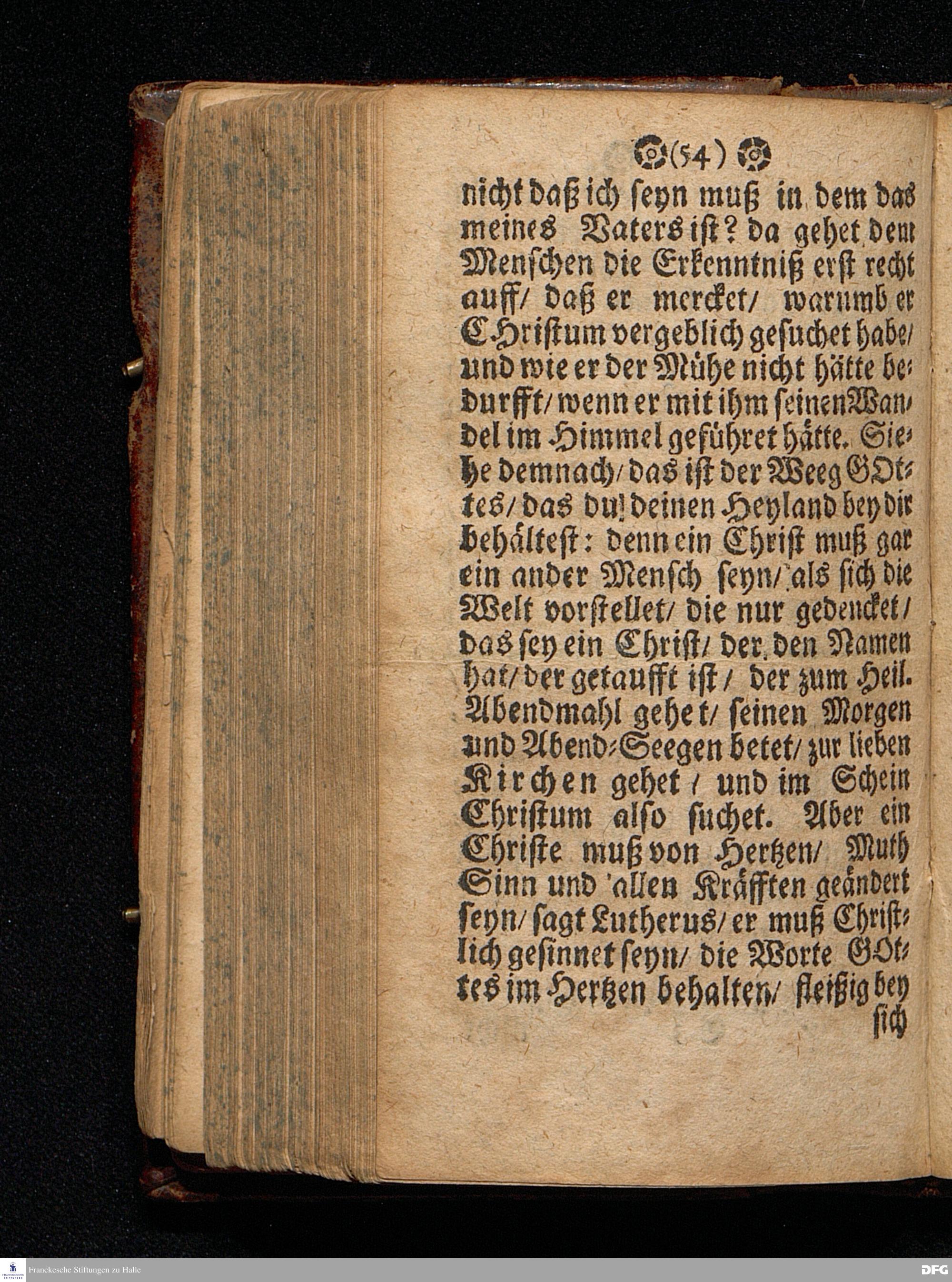 Das Schmertzhaffte Suchen unsers Herrn JEsu / Am I.Sonntag Epiphan. Anno 1697. In einer Predigt Uber das Evangelium Luc.II.V, 41--52 In der St.Georgen=Kirche zu Glaucha an Halle vorgestellet / von M.August Hermann Francken / SS.Theol.P.Ord.& P.Glauch. HALLE / Gedruckt bey Christian Henckeln / Univers.Buchdr.1700.